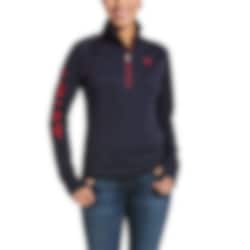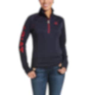 Tek Team Fleece has AriatTEK Cold Series technology that keeps you warm, Moisture Movement Technology that transports moisture away from the body and brushed fleece for the best comfort and warmth. The riding shirt is in a nice navy blue color with red details such as the zipper and the logos on the chest and one sleeve. Tek Team Fleece also has holes for the thumbs and a nice slightly higher collar.