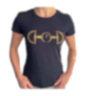 Elegant T-shirt with bit motive, a dream shirt for all equestrians. Vestrum offers high-quality clothes with elegant design and Barbados T-shirt is no exception. The shirt gives a flattering fit an high comfort, a stylish print with a bit and the Vestrum logo in gold embelishes the front of the shirt, the print in gold is incredibly nice in combination with the navy color of the T-shirt.