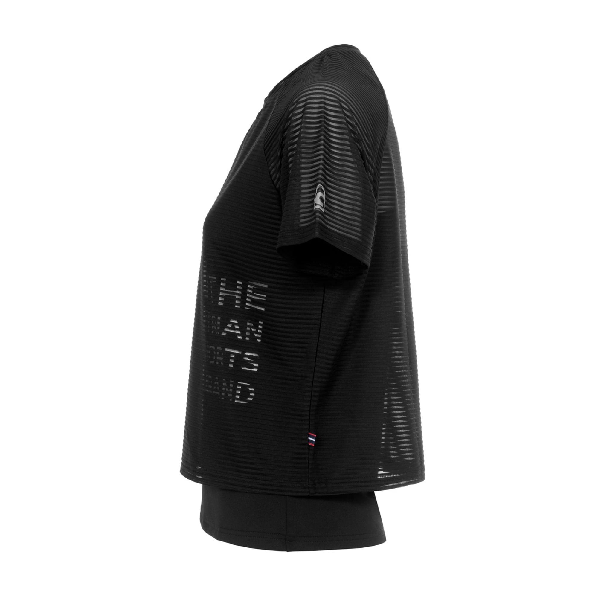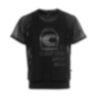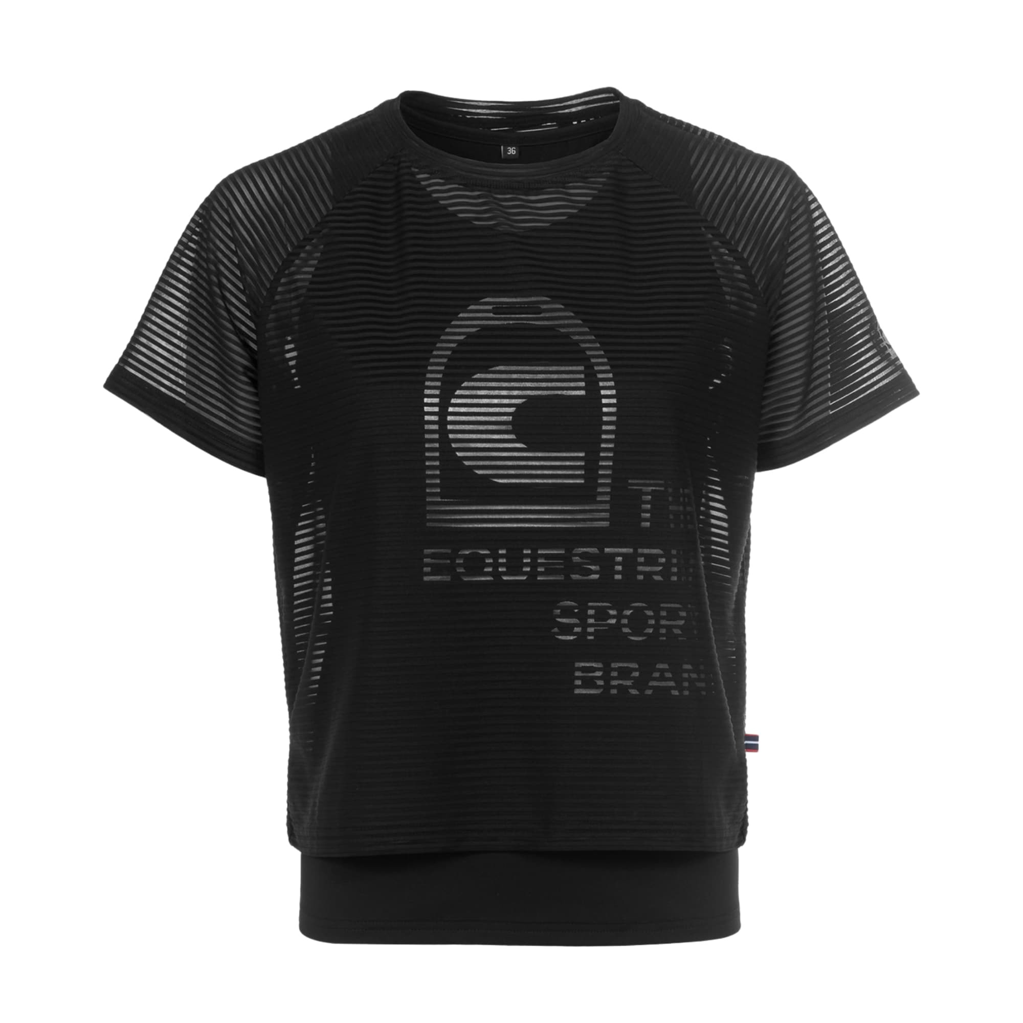 Cavalbelia T-shirt from Cavallo is a functional training top in a double-layer design, consisting of a shorter outer T-shirt with short sleeves and a slightly transparent striped texture. Underneath, there is a longer inner top that creates a layered look and features a large Cavallo print at the front.