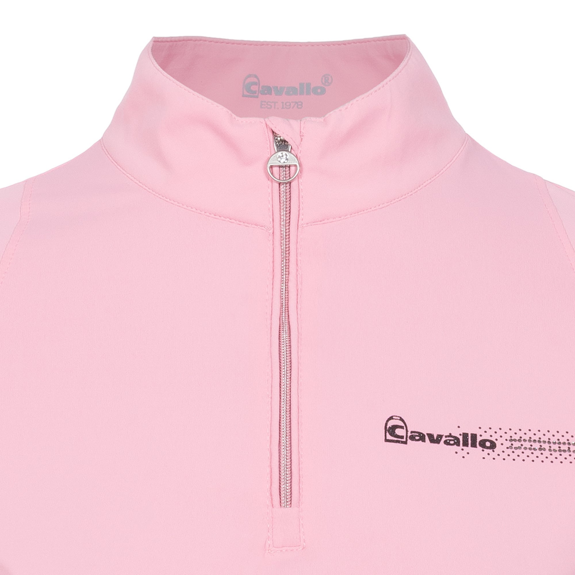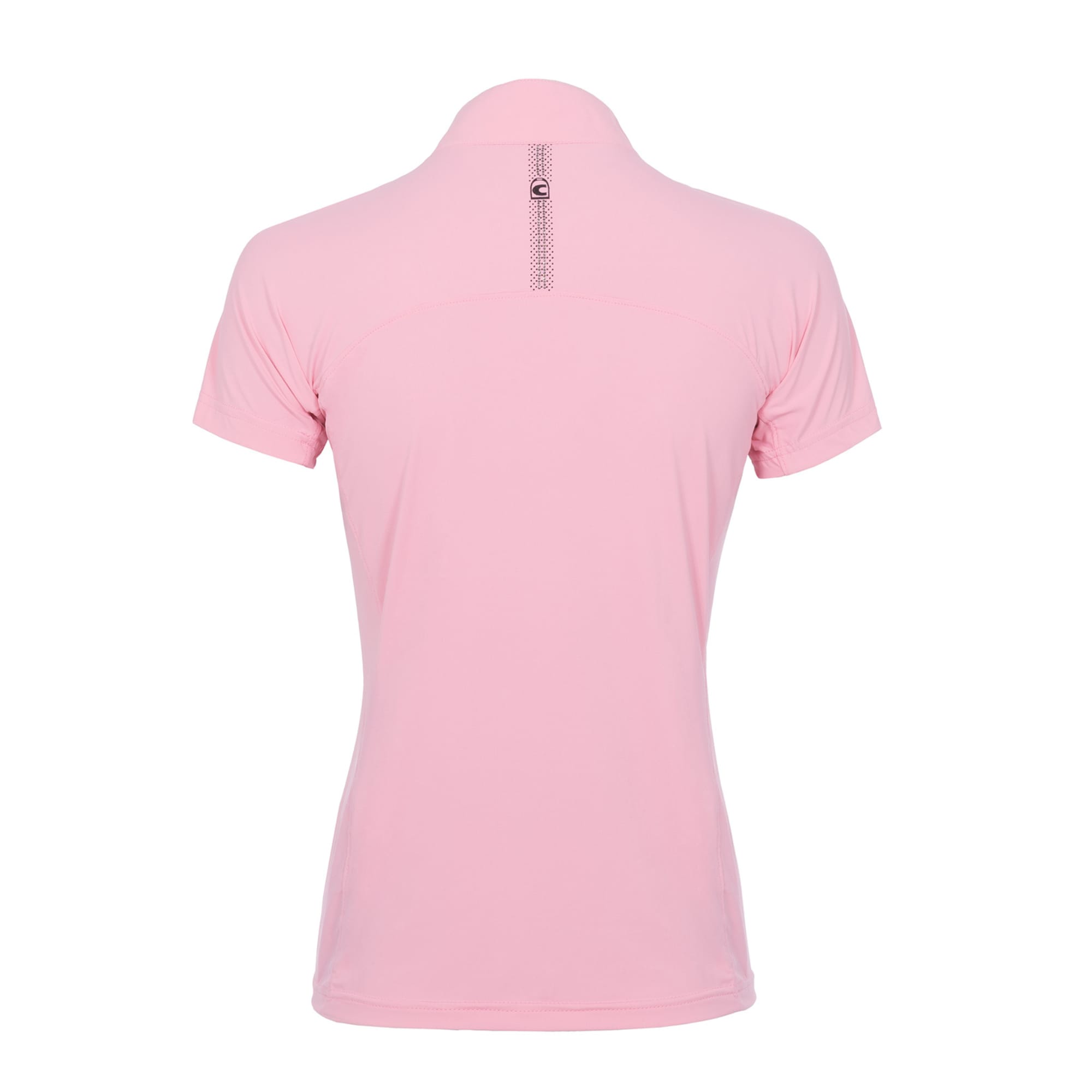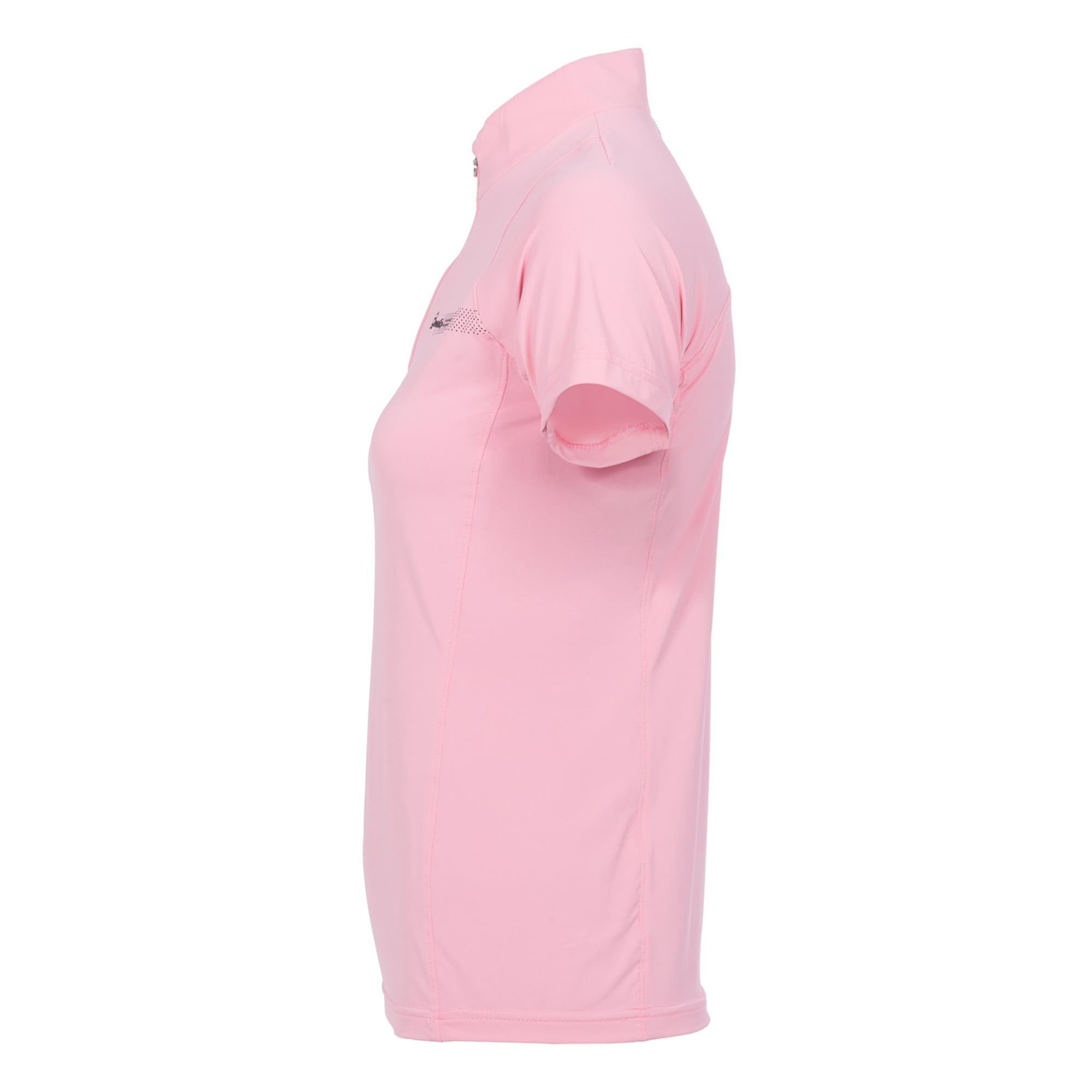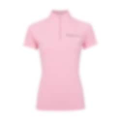 Cavalberri Pike in Powder Pink is an elegant and functional riding polo shirt featuring a close-fitting silhouette and a sleek stand-up collar adorned with decorative crystals.