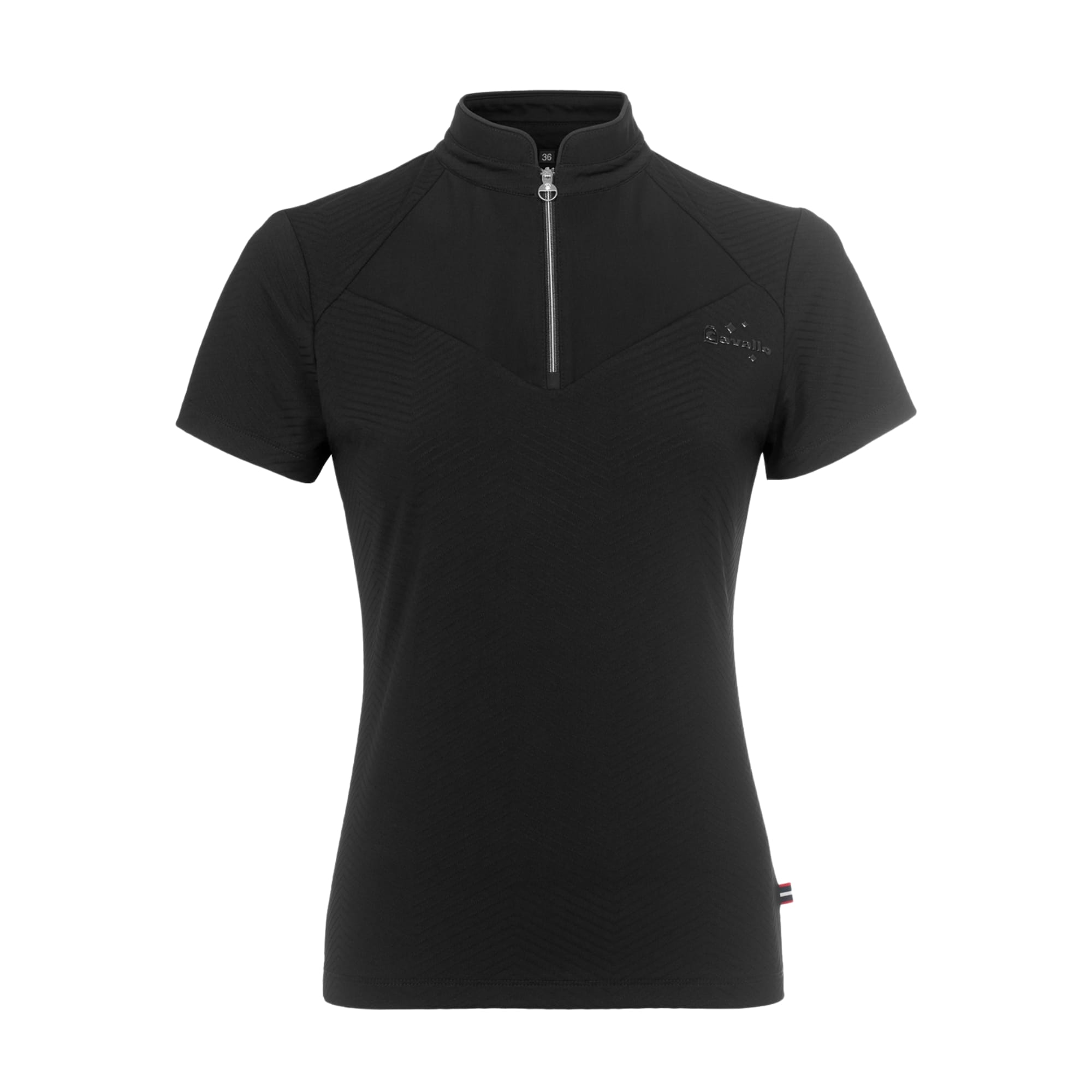 Cavalbritny T-Shirt from Cavallo is a short-sleeved training top with a stand-up collar, made from a functional fabric. The style features a short front zip with a Cavallo pendant decorated with a crystal stone.