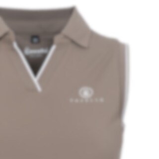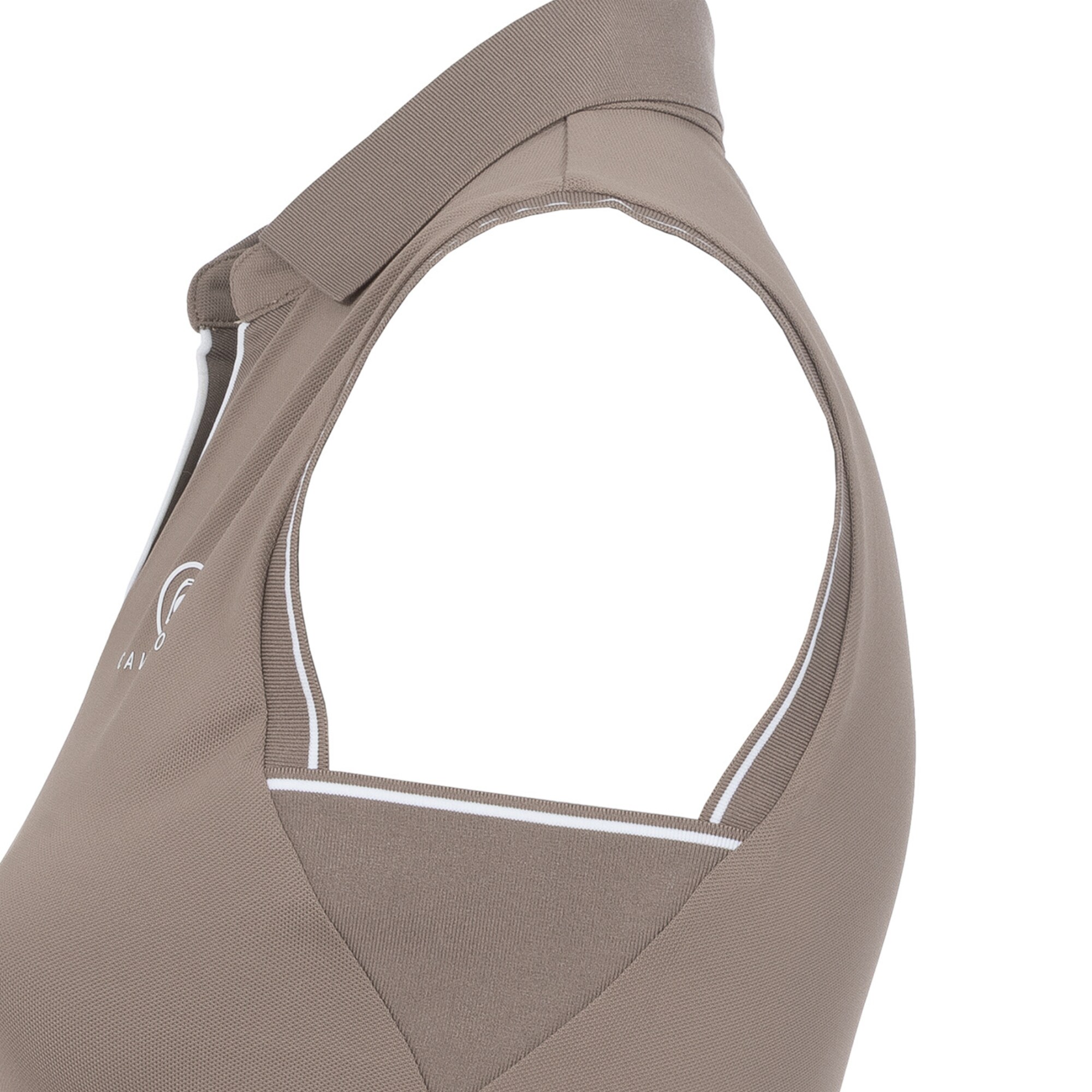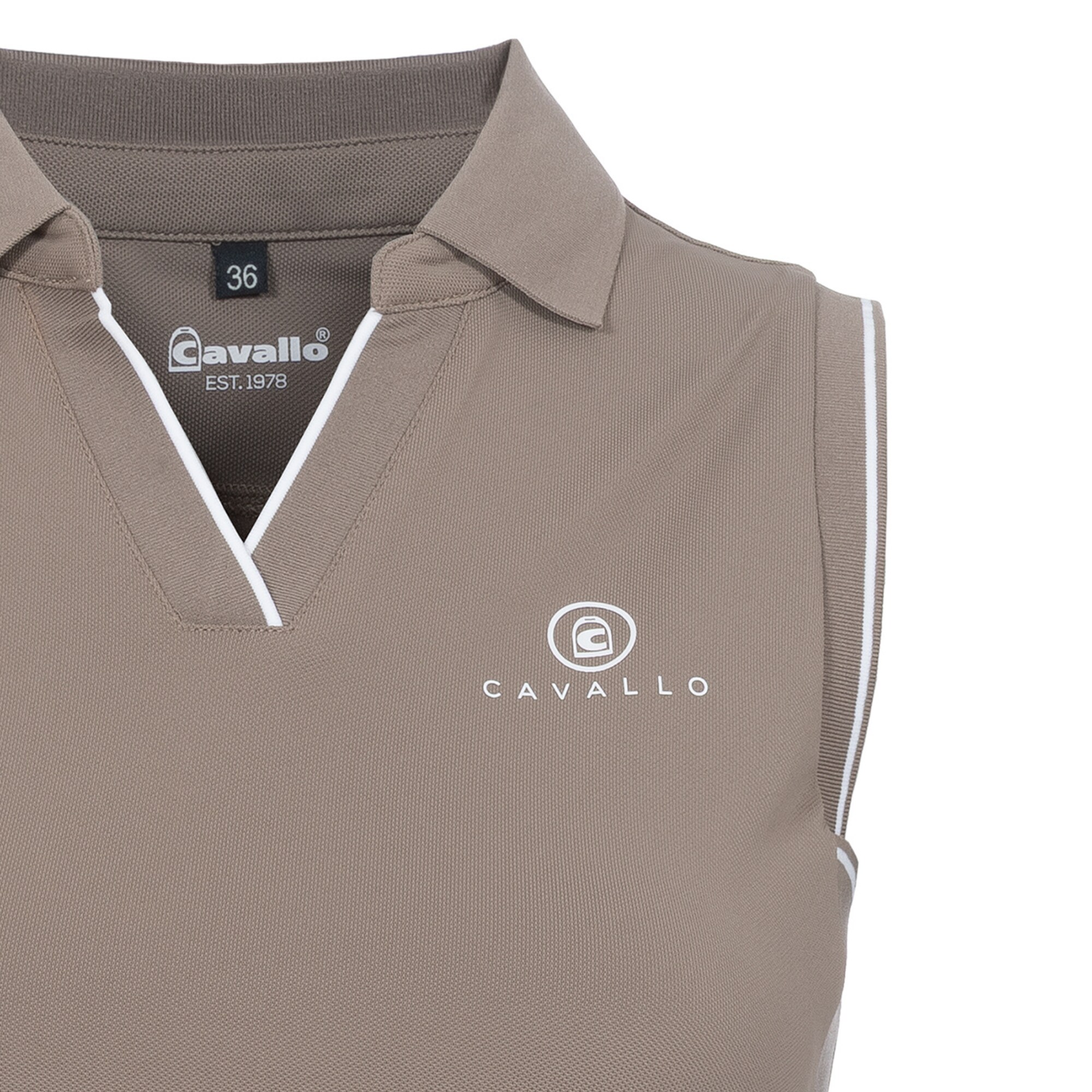 Cavalbua Polo from Cavallo is a sporty sleeveless riding top made from functional fabric. It features a ribbed collar and ribbed trims at the V-neck and armholes, detailed with white stripes. A white Cavallo logo is placed on the left chest.