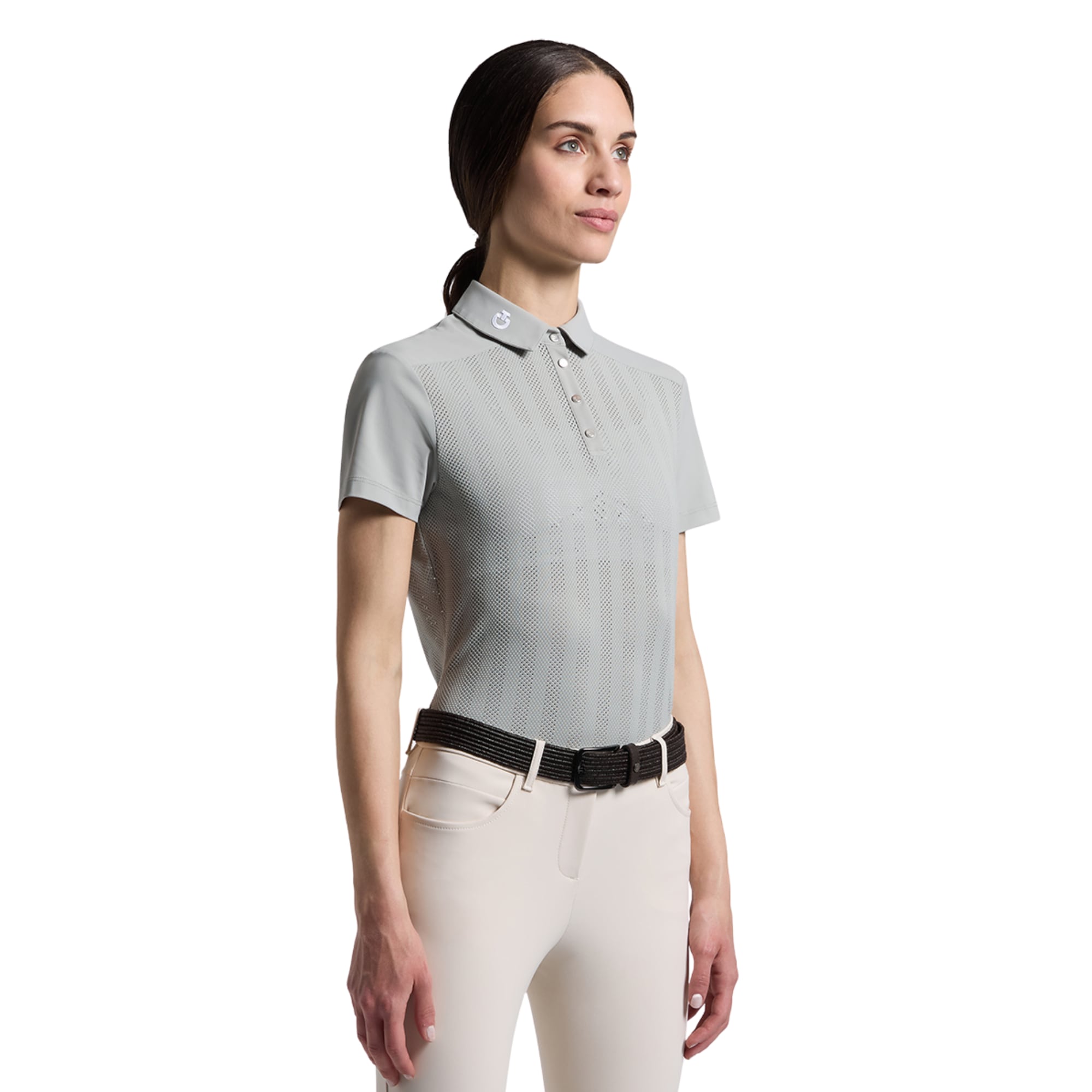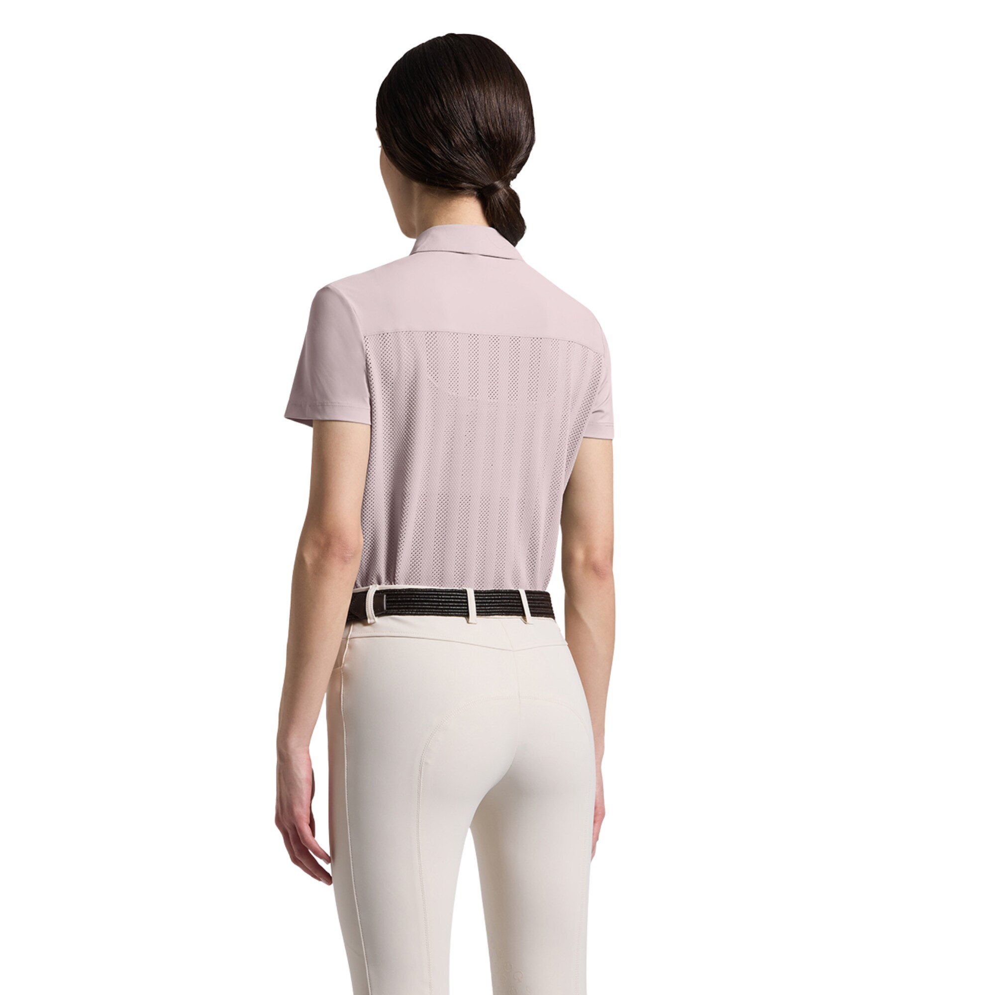 Short sleeve light pink riding polo in technical fabric with perforation and subtle CT details.