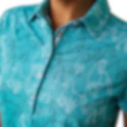 This riding polo is made in a supersoft and wonderful material with short sleeve. The riding pique has several buttons at the collar and an Ariat logo on the chest. The riding shirt is in a lovely blue colour with a cool horse print all over the shirt.