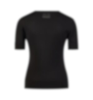 - Fine knit design with rounded neckline and slightly longer sleeves