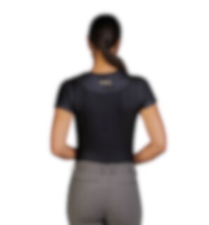 The Pikeur Selection T-shirt seamlessly combines style and comfort with a flattering slim fit. This black T-shirt is adorned with an elegant gold Pikeur logo on the front – perfect for an effortless everyday look or wear at the stables.