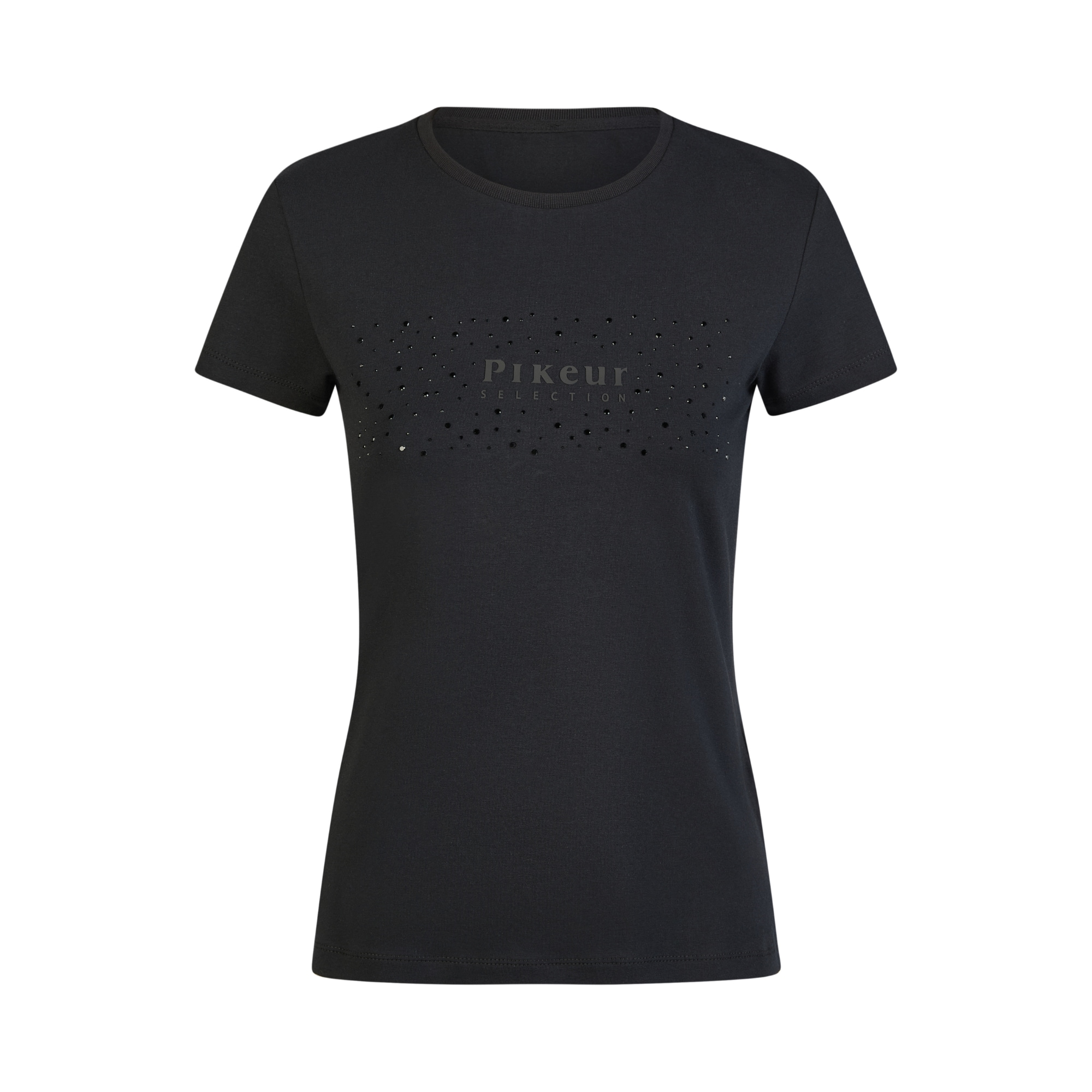 The T-shirt features a raised Pikeur Selection silicone print on the chest, framed by subtle rhinestones. Made from soft cotton with stretch, it follows the body comfortably while maintaining its shape.