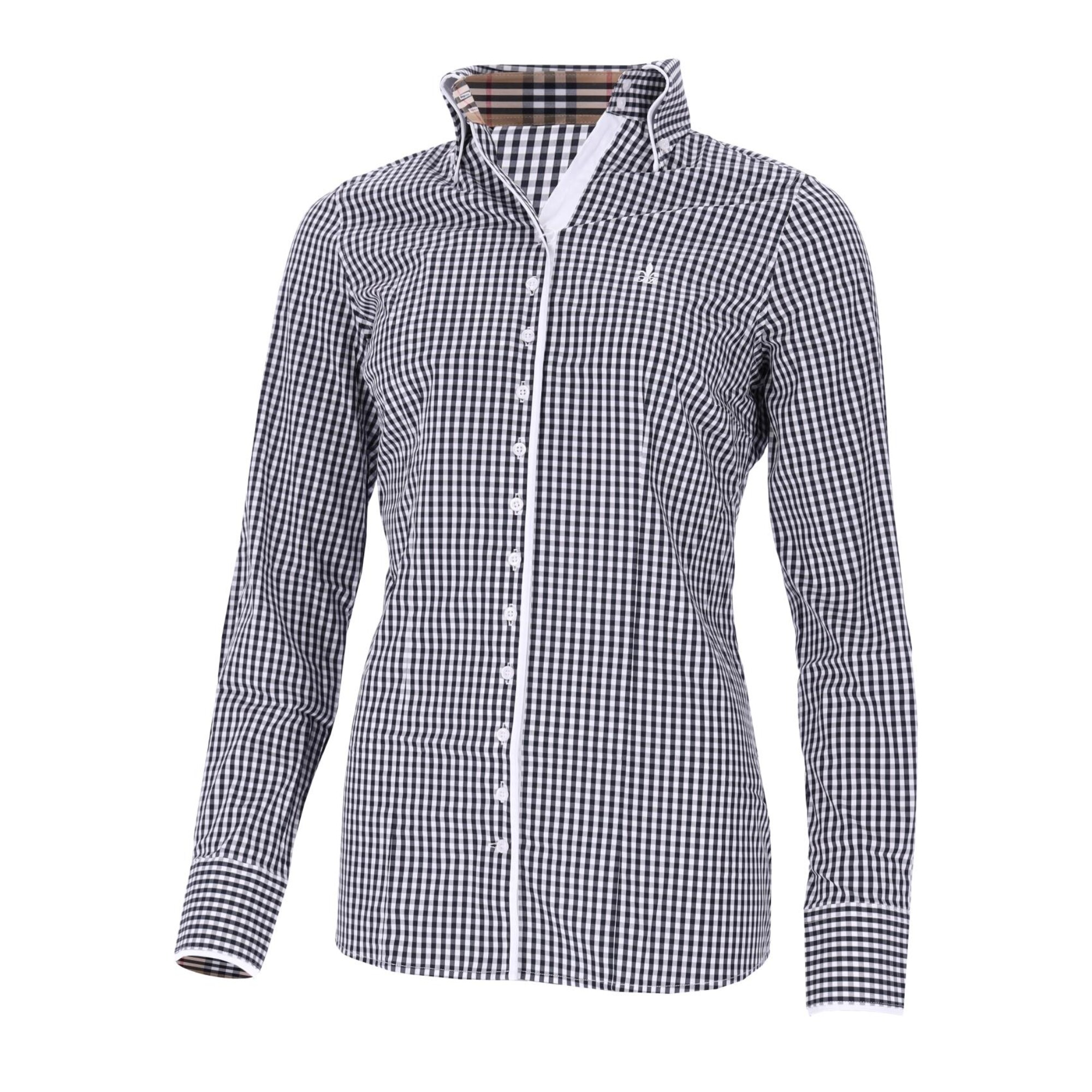 - Double collar with checked inner collar and white underlay
