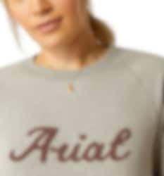 The Benicia Sweatshirt from Ariat is as comfortable as it is stylish, a sweatshirt that works just as well for everyday wear as it does in the stable. The sweatshirt is very comfortable to wear and also features a flattering fit. It has a sleek design with a crewneck and an Ariat logo on the front in velour.