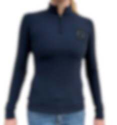 The sweater features a slim fit with a stretchy fabric that moves with the body, making it ideal for both training and competition. Its sleek design is complemented by Vestrum's iconic logo on the chest, adding an exclusive touch. The riding sweater also has a high collar and a 3/4 zip in the front.