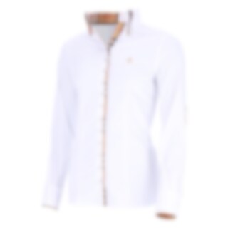 The inside of the collar, cuffs and placket is finished with a checked contrast fabric in brown and beige tones, creating a discreet expression that only becomes visible when worn. Elbow patches in the same fabric act as clear reinforcements, adding durability while enhancing the shirt’s character.