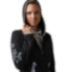 Byron Zip Hoodie is made in recycled technical fleece with stretch. This riding sweater is moisture wicking and has a full two-way zipper. The rididng sweater from Ariat is in the color Black with details in grey, as the logotype on the sleeve.