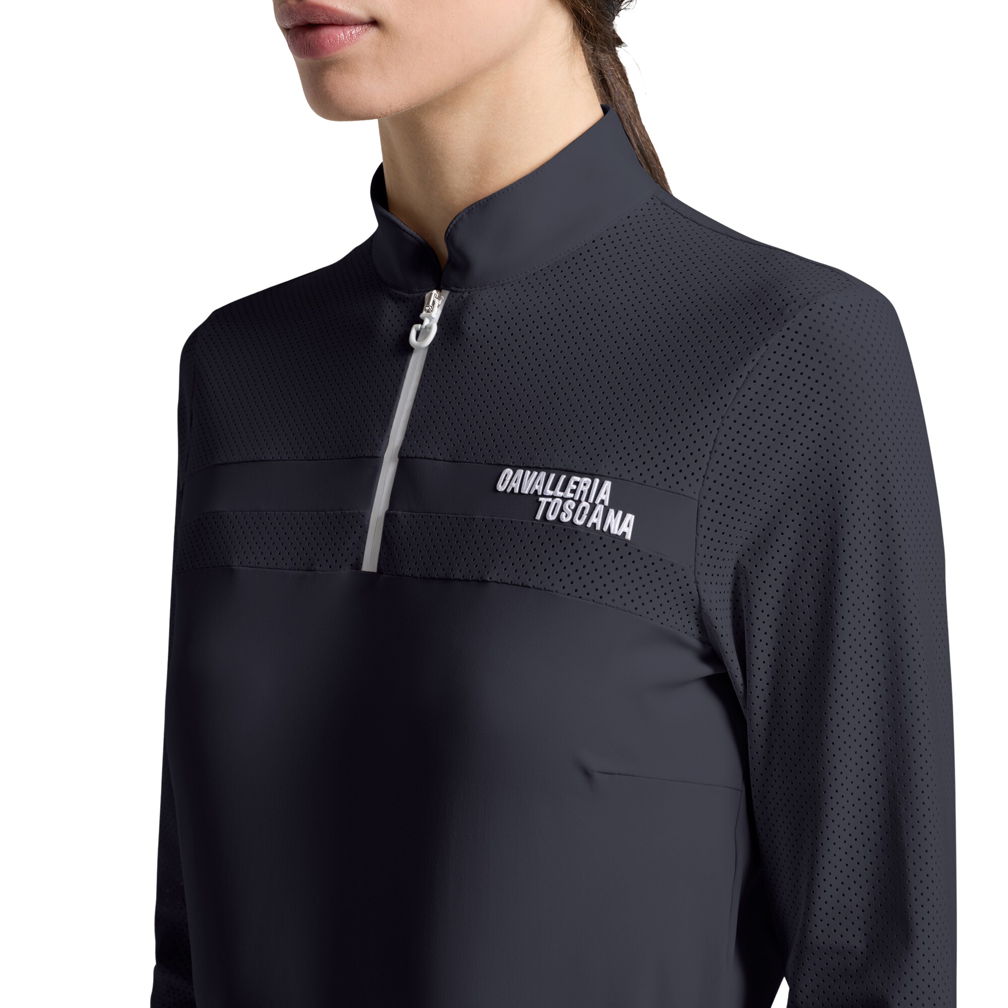 The riding top is made from a technical fabric that helps keep you cool and wicks away moisture during training. Perforated panels across the chest, back and sleeves provide targeted ventilation where it is needed most, helping to maintain a comfortable and even temperature.