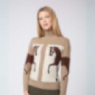 Vestrum Ixelles Knitwear in the color Sabbia/Marrone is an exclusive knitted sweater featuring a unique horse motif in contrasting shades.
