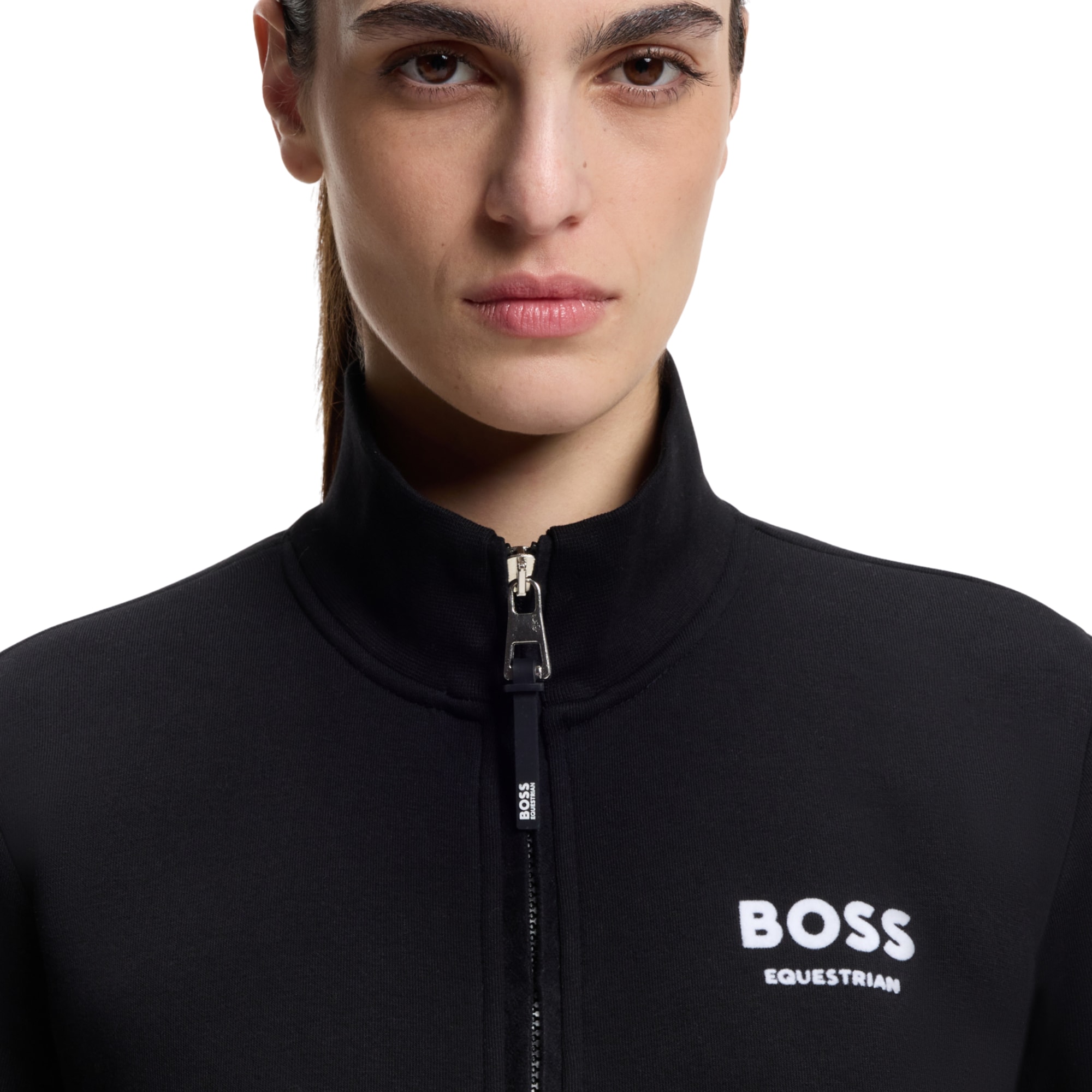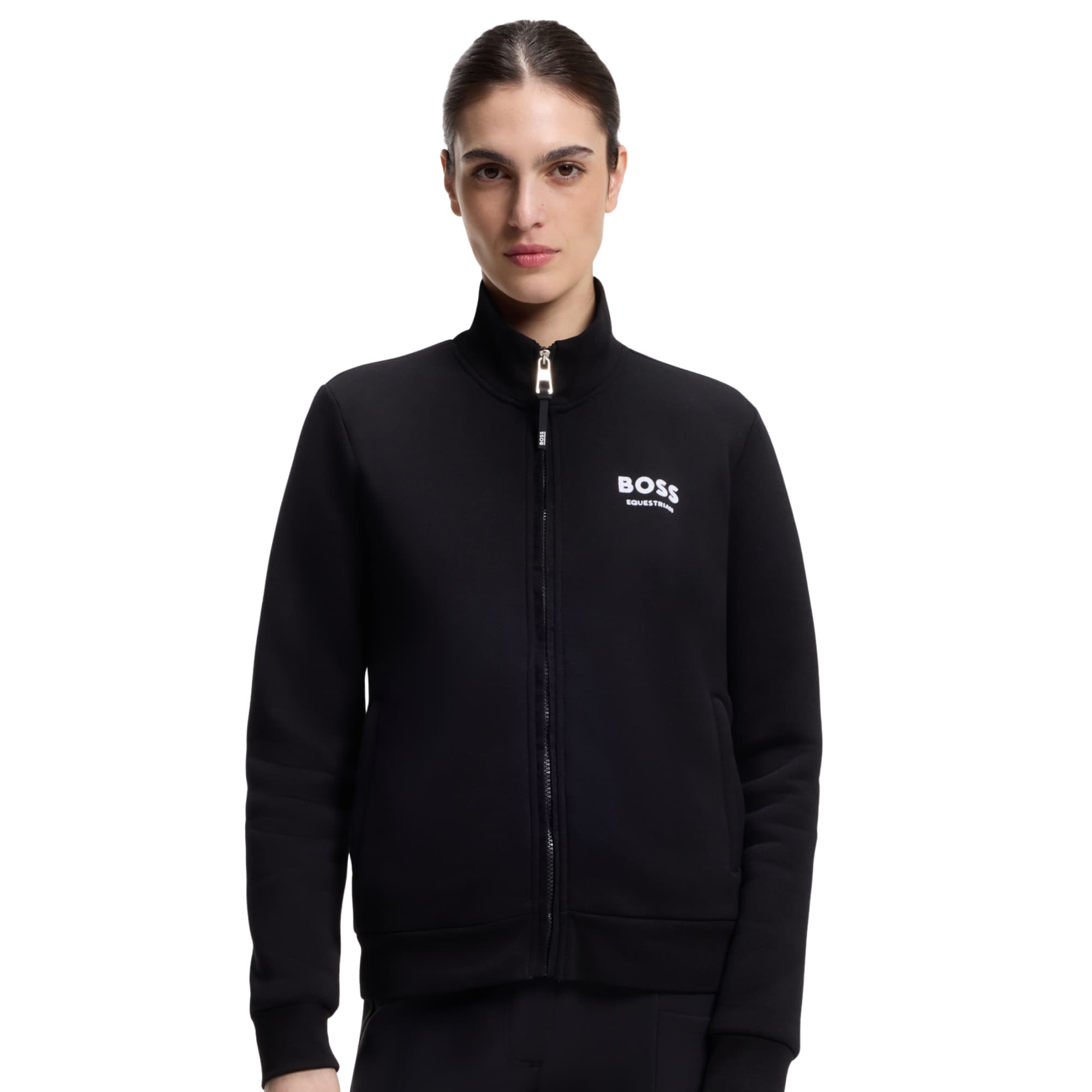 Boss Equestrian Paris Sweatshirt in Black, a stylish and comfortable sweater made from a cotton/polyester blend with a brushed interior, zippered pockets, and the classic Boss logo.