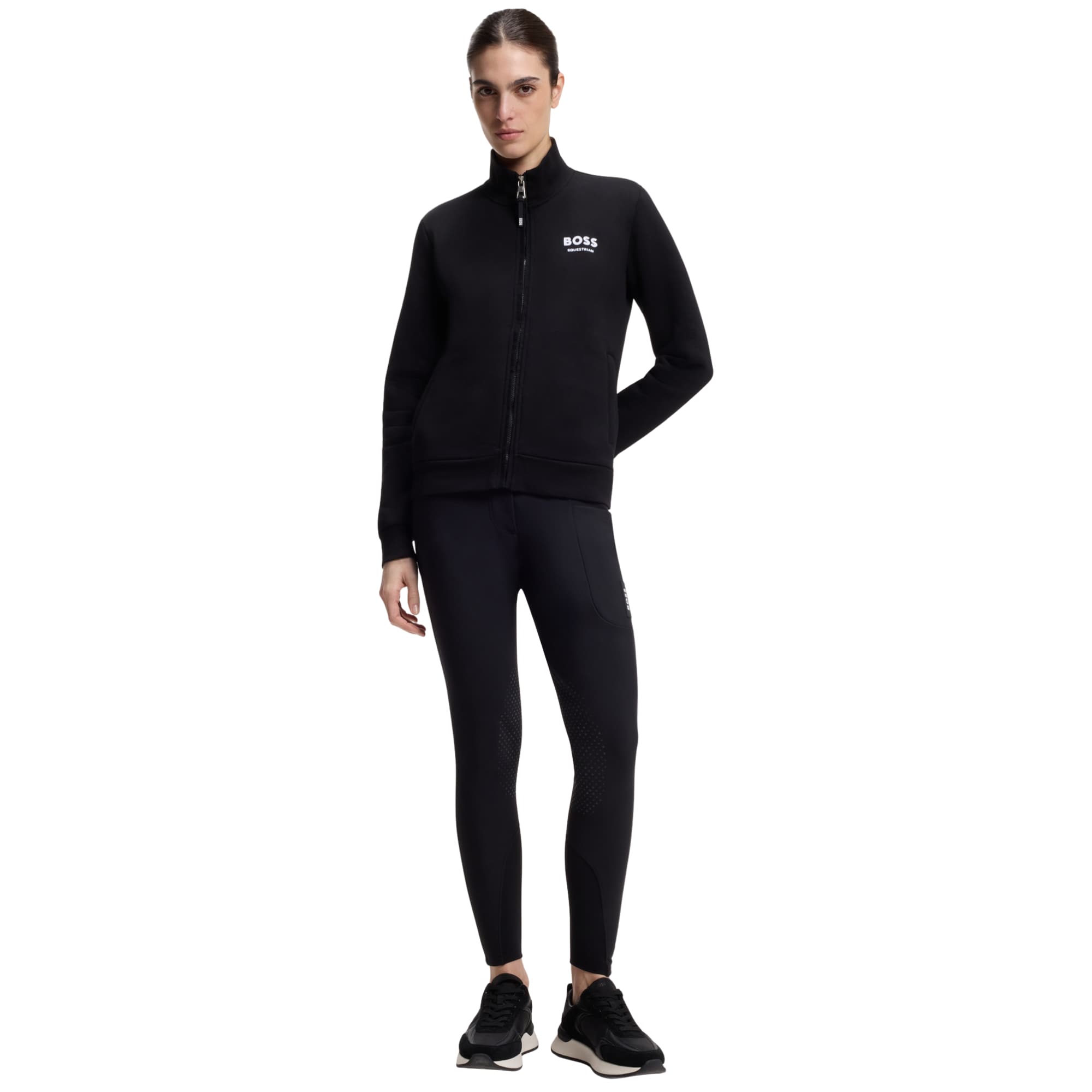 This black sweatshirt is equipped with practical zippered pockets and a silicone puller with a subtle BOSS logo for a refined detail. The chest is adorned with the iconic Boss Equestrian logo, making the garment equally stylish in the stable or for everyday wear.
