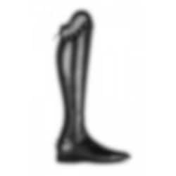 Crafted from soft nappa leather, the boot molds closely to the leg for a true second-skin feel and optimal contact with the horse. The inner side is lined with grip leather for a secure lower leg and consistent leg position. Front derby lacing, a rear zipper, and an elastic stretch panel ensure easy on/off and a comfortable, flexible fit throughout the day.