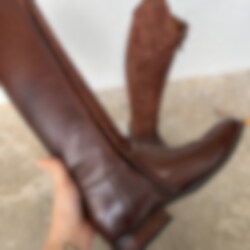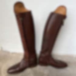 These riding boots just came into our shop. They have only been worn a few times and are like new. They come in suede brown and the measurements are size 38 foot and MA-S (46.5 cm height and 34 cm calf).