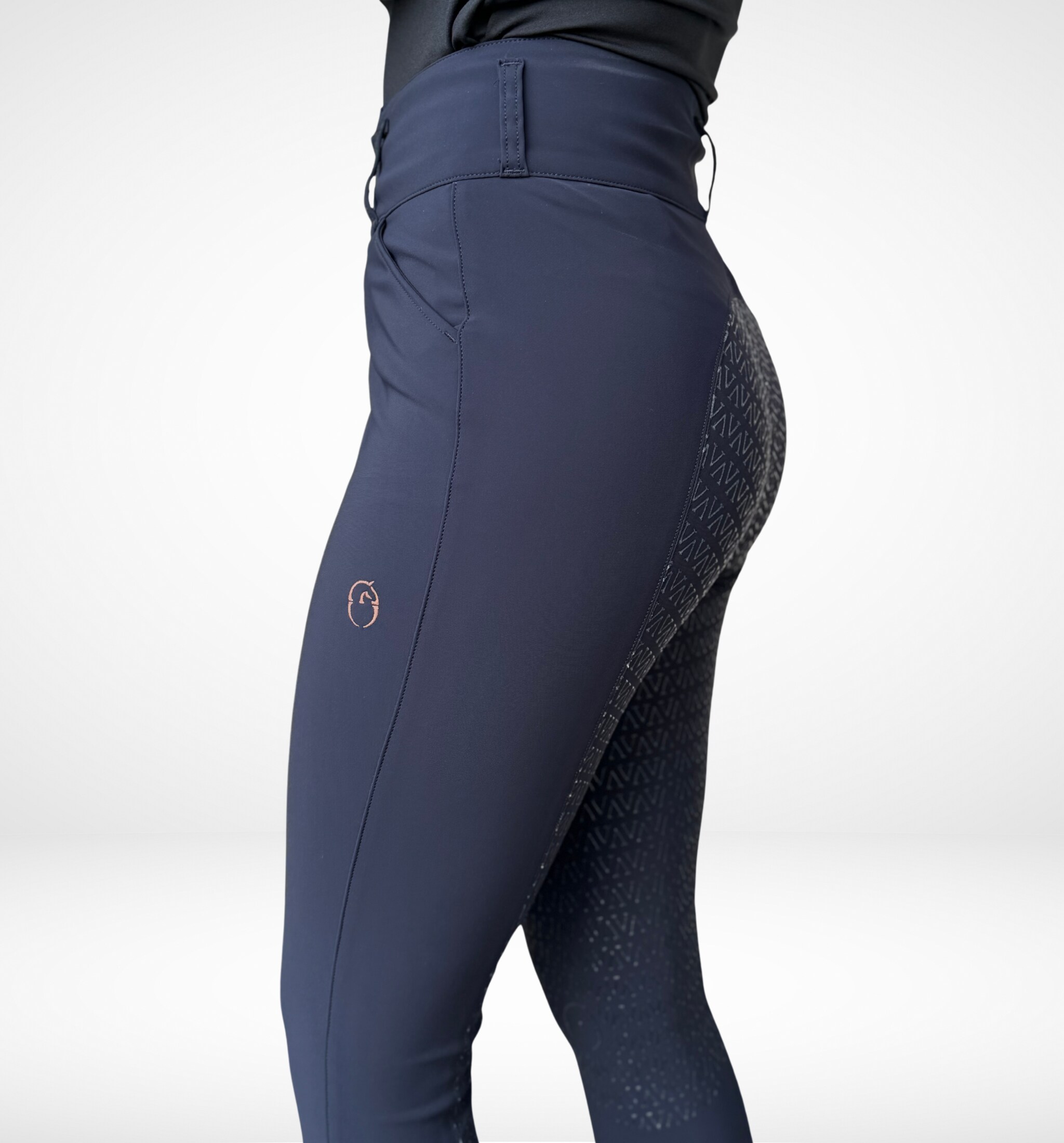 Molveno from Vestrum is very comfortable, have a high waist and full grip with Vestrum´s pattern. The breeches have two buttons at the waist and elastic leg ends, which provides extra comfort. The Molveno breeches are a perfect breeches for those who want to be both stylish and comfortable in the saddle or in the stable! These are in a incredibly lovely navy color.