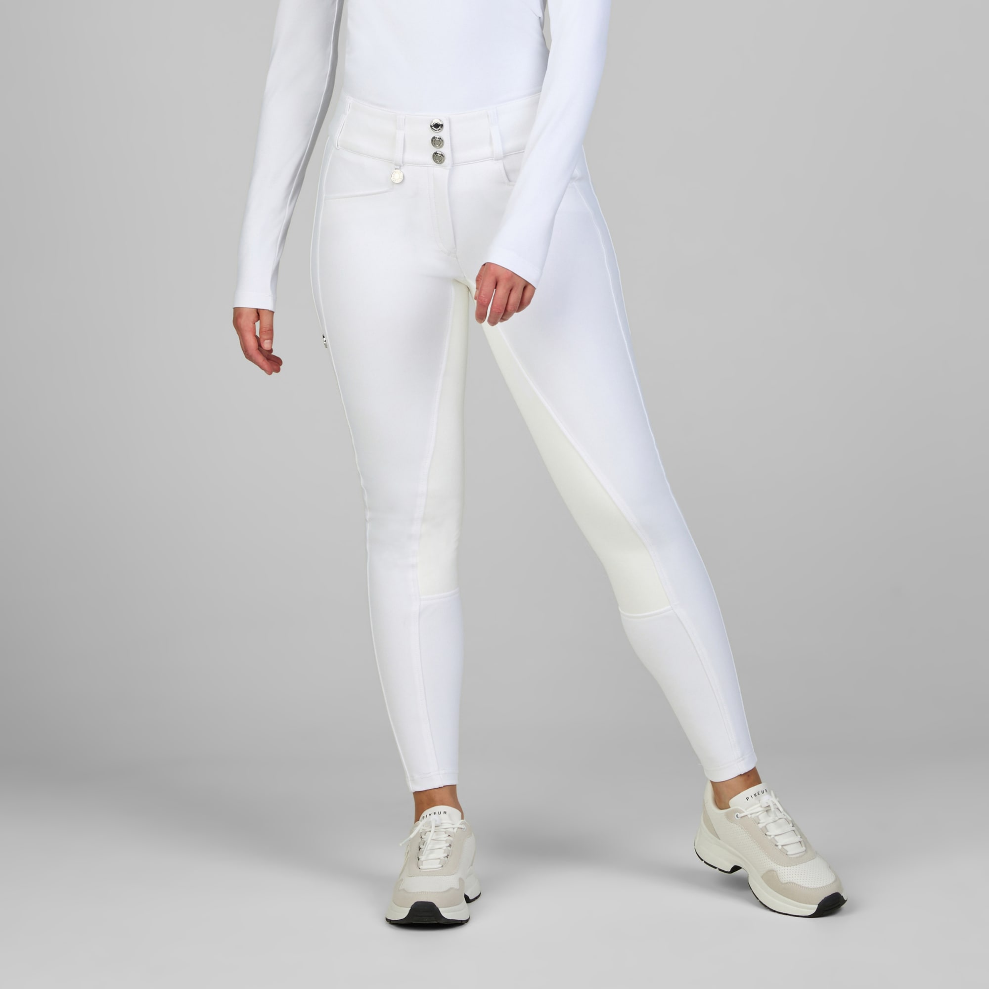The New Candela by Pikeur is an elegant riding breech featuring a high waist and wide waistband with triple button closure, offering both support and style. This model is made from the technical Pro Performance fabric with 4-way stretch, providing a flexible feel and support in the saddle.