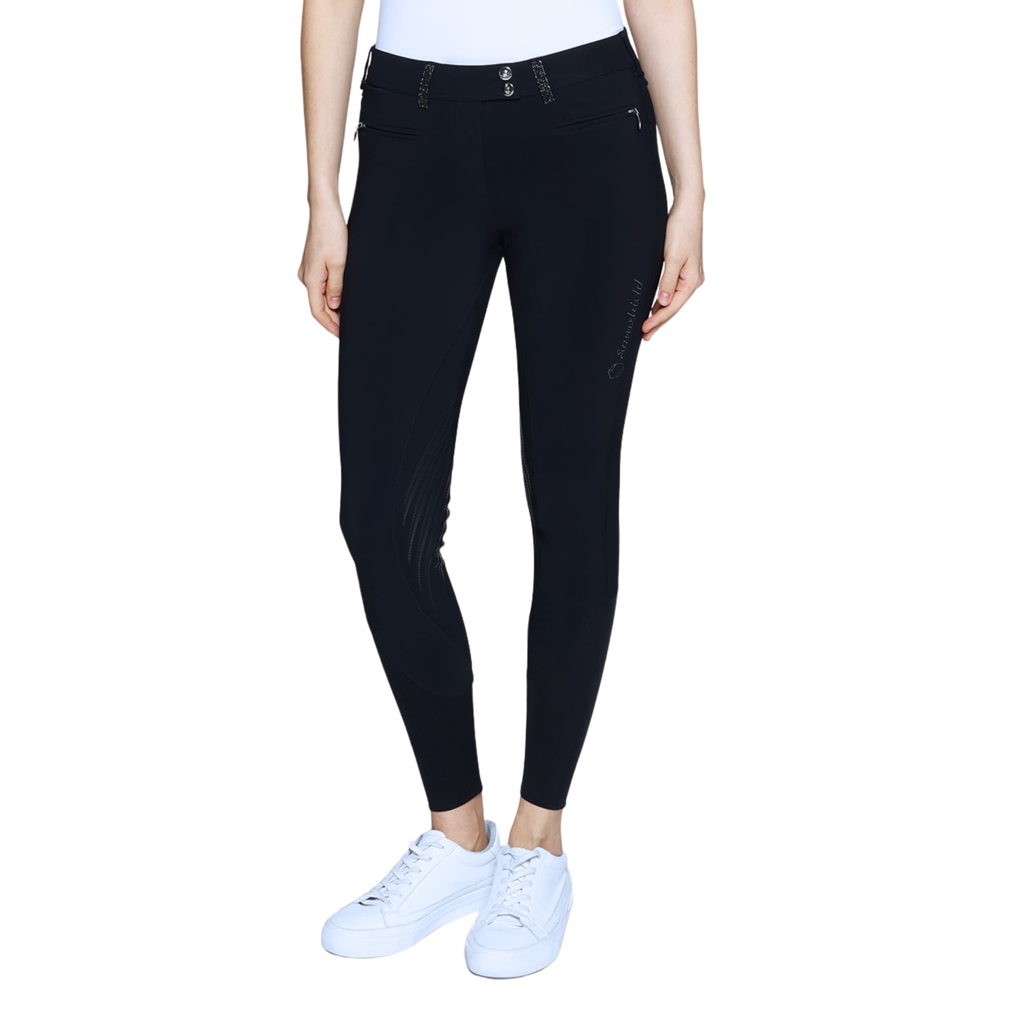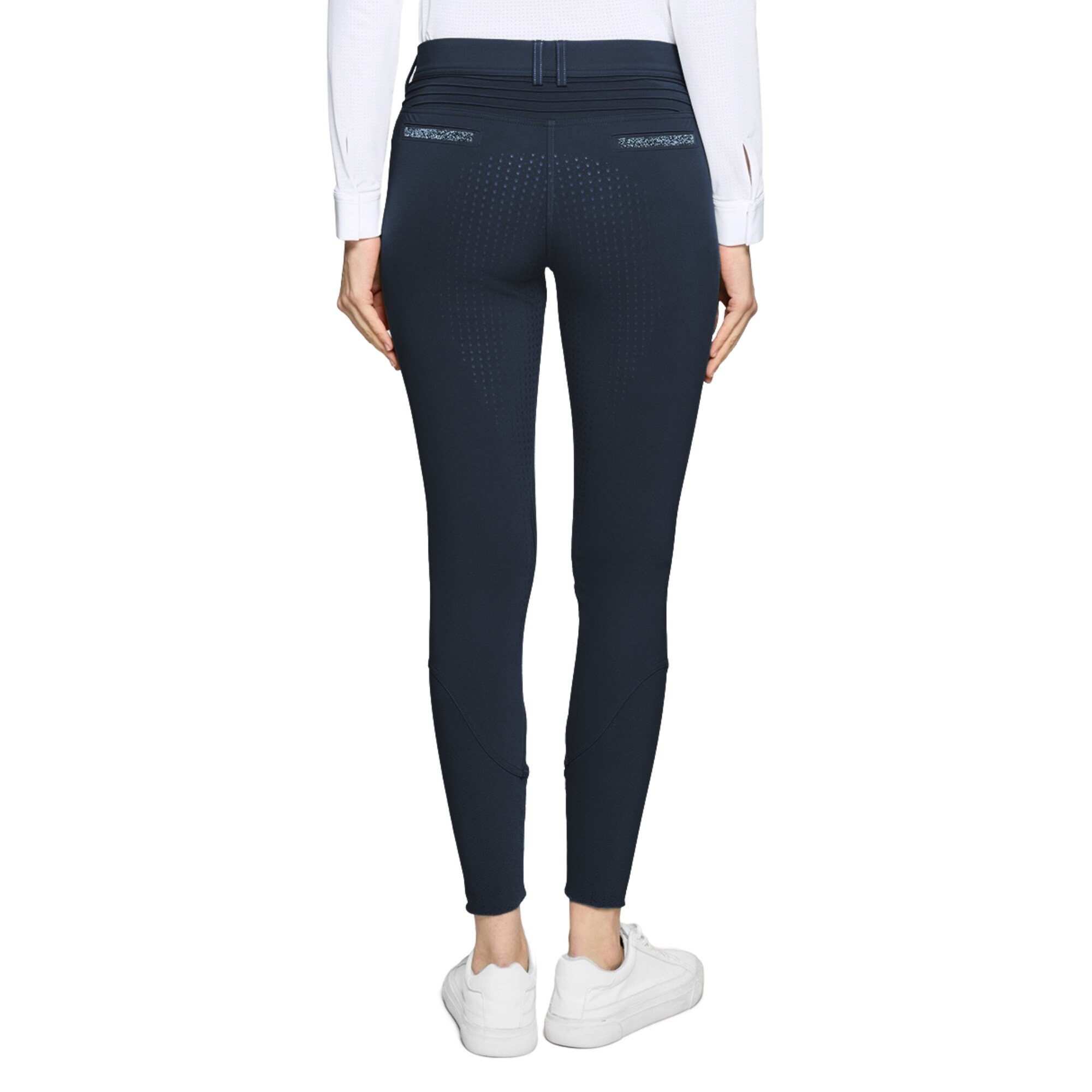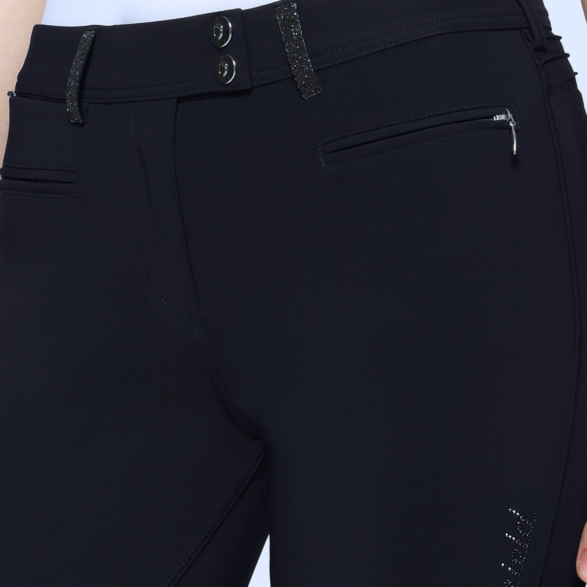 Navy Samshield Diane riding breeches for women, made from a flexible, stretchy performance fabric, featuring elegant Swarovski crystals on the back pockets, thigh and belt loops.