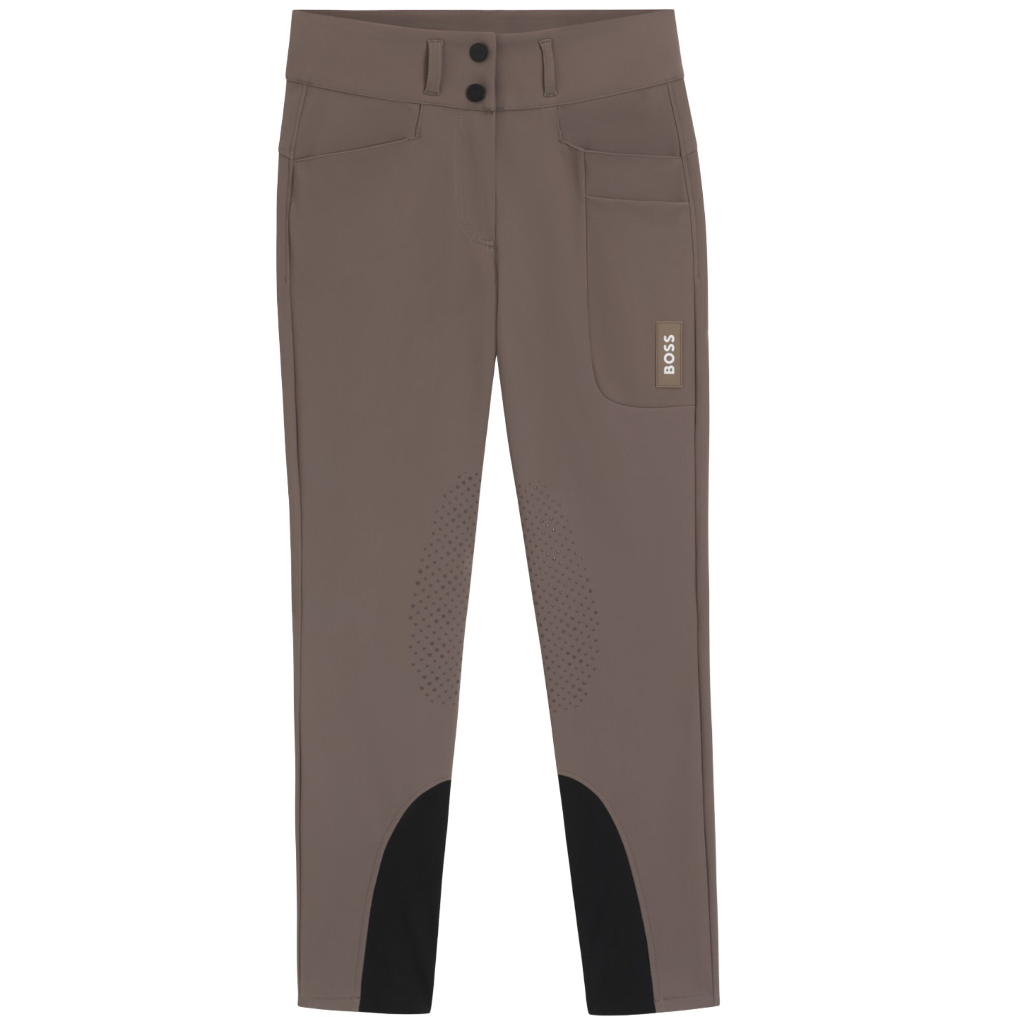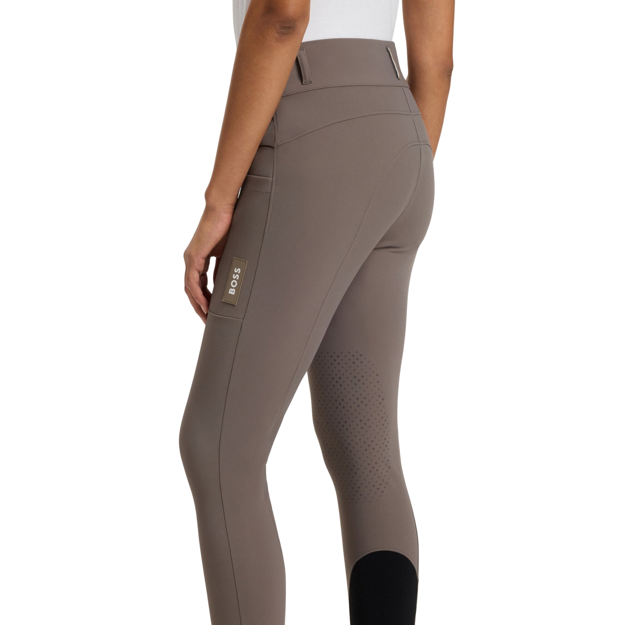 Hannah riding breeches from Boss Equestrian with a high waist, ergonomic silicone knee grip and a practical pocket, made from a breathable, quick-drying fabric with built-in sun protection.