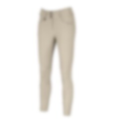 Candela SD has been updated with a screen-printed full seat and no knee seam, creating a clean look and even contact with the saddle. Practical front pockets are placed at the front, and discreet Pikeur prints decorate both the front and back. The breeches are finished with sock-style leg endings.