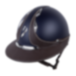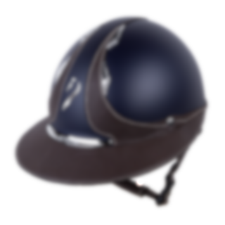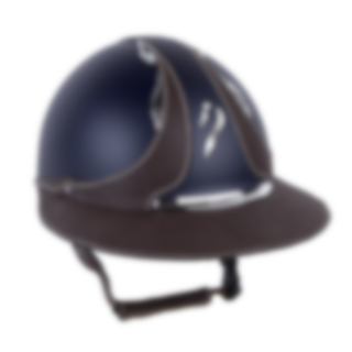 Galaxy Eclipse Riding Helmet from Antarés - A stylish matte navy riding helmet with Eclipse sun visor and brown leather details.