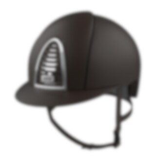 The riding helmet Cromo 2.0 Textile has a brown varnished matt shell, front, rear and visor. Chrome frame, brown grid, sub-grid and button, brown leather chinstrap. Cromo 2.0 has an innovative mechanical system that allows the rider to change the color and design on both the front and rear to adapt the helmet to his own taste and liking.