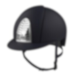 The riding helmet Cromo 2.0 Textile has a navy blue varnished matt shell, front, rear and visor. Chrome frame, grid, sub-grid and button, navy blue leather chinstrap. Cromo 2.0 has an innovative mechanical system that allows the rider to change the color and design on both the front and rear to adapt the helmet to his own taste and liking.