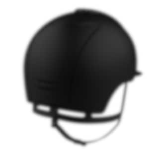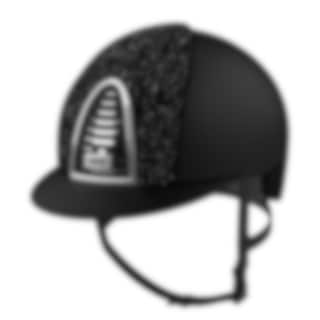 The riding helmet Cromo 2.0 Textile/Sparkling has a black varnished matt shell, rear, visor and grid. Sparkling black velvet on front, chrome frame, sub-grid and button. Black leather chinstrap. Cromo 2.0 has an innovative mechanical system that allows the rider to change the color and design on both the front and rear to adapt the helmet to his own taste and liking.