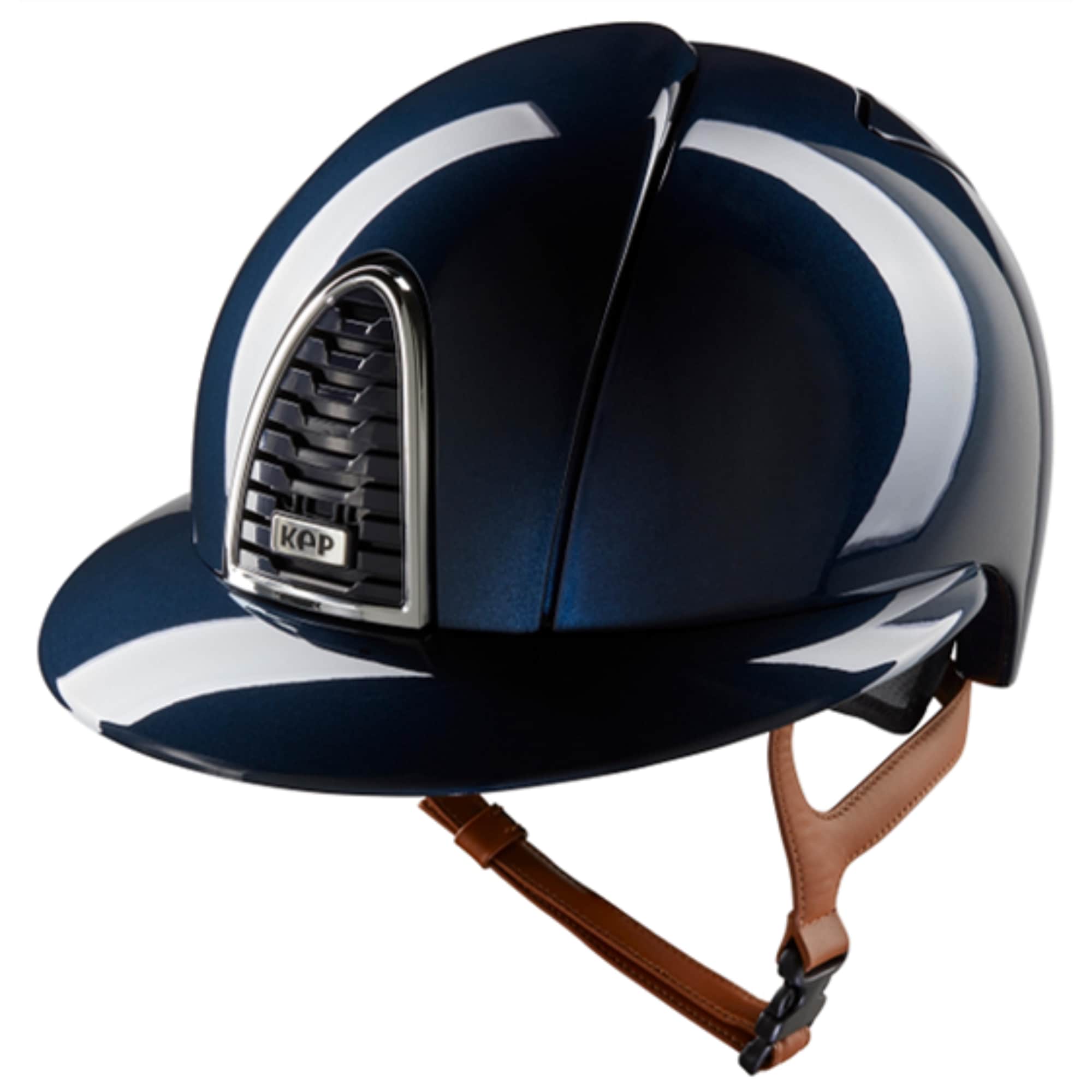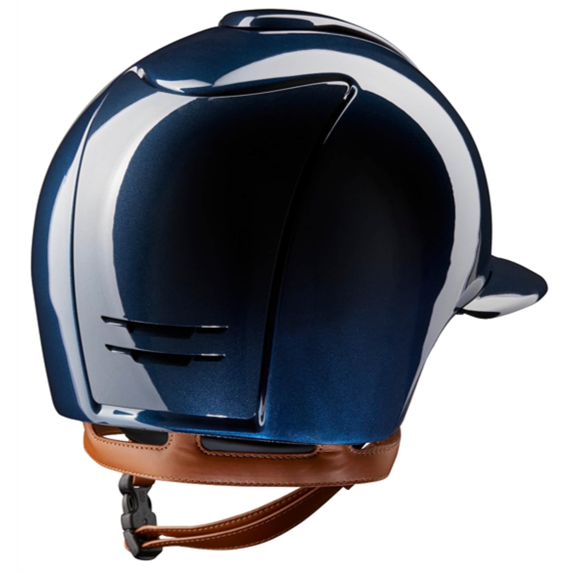 The Cromo 2.0 Shine Polo with beige chin strap is a safe and stylish riding helmet featuring a new innovative mechanical system from the Italian brand KEP.