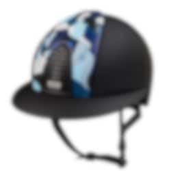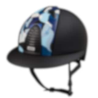The riding helmet Cromo 2.0 Textile Chrome has a matt black shell, rear, and visor with a unique front in the Blue Vikings pattern in blue colour. Textile frame and grid, with a matching grey subgrid and button, as well as a black leather chinstrap. Cromo 2.0 has an innovative mechanical system that allows the rider to change the colour and design of both the front and rear to customise the helmet according to their own taste and preference.