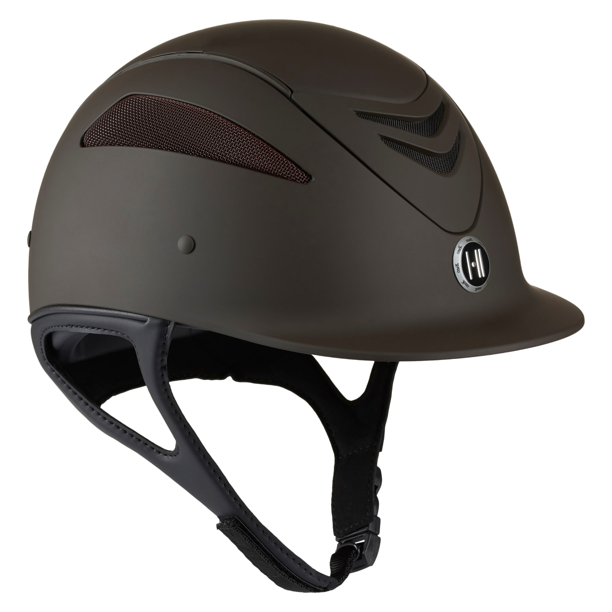 The riding helmet has a clean and simple design with a matte brown finish. Ventilation openings at the front, back and sides provide effective airflow during riding.