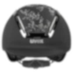 The top of this elegant riding helmet is decorated with a cascade of Swarovski® crystals in a shiny chrome frame. More than 500 stones sparkle like stardust and are a real eye-catcher! These studs sit on top of the riding helmet which is made with Uvex's proven hard shell technology. Exxeed Diamond also has a perfect fit and the best protection in every situation. This riding helmet is completed by Uvex's new adjustable Y dividers with vegan leather chinstraps that you can easily adjust.