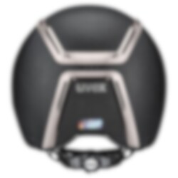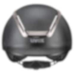This riding helmet has a lot to offer - both in appearance and functions. You'll love its grained vegan leather cover and striking metallic black chrome frame. It makes it chic and enhances the sporty style of this riding helmet. The clean look is completed by Uvex's new adjustable Y dividers with vegan leather chinstraps.