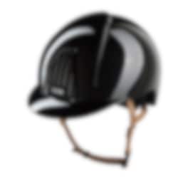 KEP Smart Nova is a modern riding helmet that combines exceptional safety, superior comfort, and renowned Italian craftsmanship. The glossy black finish with an elegant metallic effect highlights the helmet’s details, while the beige chin strap adds an exclusive detail that allows the helmet to stand out in a sophisticated way.