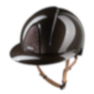 KEP Smart Nova Polo is a modern riding helmet that combines exceptional safety, superior comfort, and renowned Italian craftsmanship. Its glossy brown finish, paired with the glittering front panel and the KEP logo in glitter at the back, creates an exclusive and stylish appearance. The beige chin strap provides a sophisticated contrast, completing the elegant design.