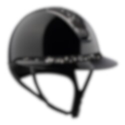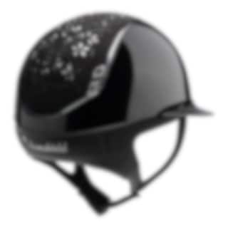 Elegant riding helmet Miss Shield 2.0 with a long visor from Samshield, glossy design with Flower Swarovski and Jewelry.