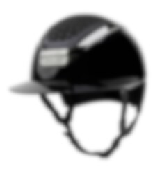 High gloss riding helmet with sun visor, the top IN-OUT is designed with authentic Swarovski Crystals.