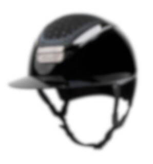 High gloss riding helmet with sun visor, the top IN-OUT is designed with authentic Swarovski Crystals.