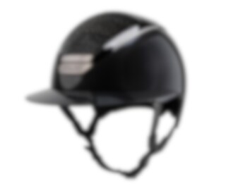 High gloss riding helmet with sun visor, the top Waterfence is designed with authentic Swarovski Crystals.