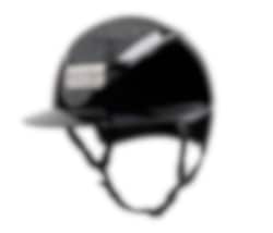 High gloss riding helmet with sun visor, the top Waterfence is designed with authentic Swarovski Crystals.