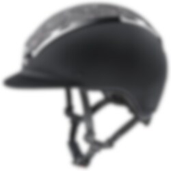 The Exxeed Flash riding helmet has more than 3000 original Swarovski® crystals and a glossy piano-like frame, which makes a real statement. Its unusual appearance includes uncompromising protection with its proven hard shell technology. This riding helmet has a satin cover in black or navy and is part of the Uvex premium collection. An incredibly glamorous riding helmet that really stands out!