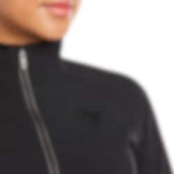 This riding jacket is in softshell paired with high-stretch recycled polyester blend. The riding jacket is wind and water resistant which makes it perfect as a thinner jacket to use both in the stable and during training with the horse.