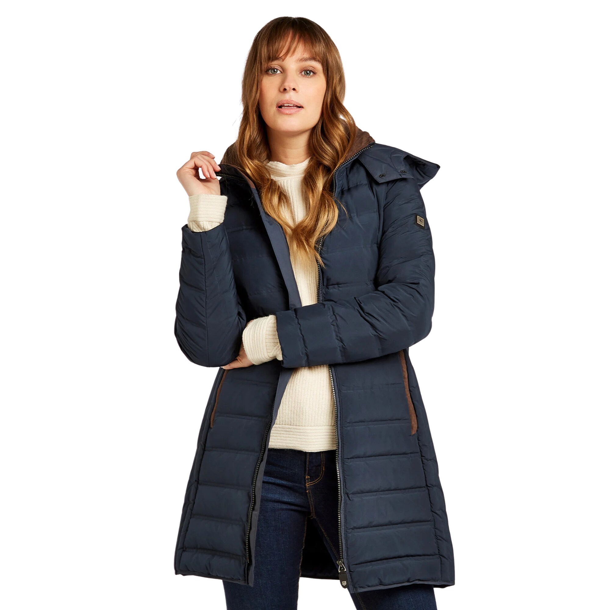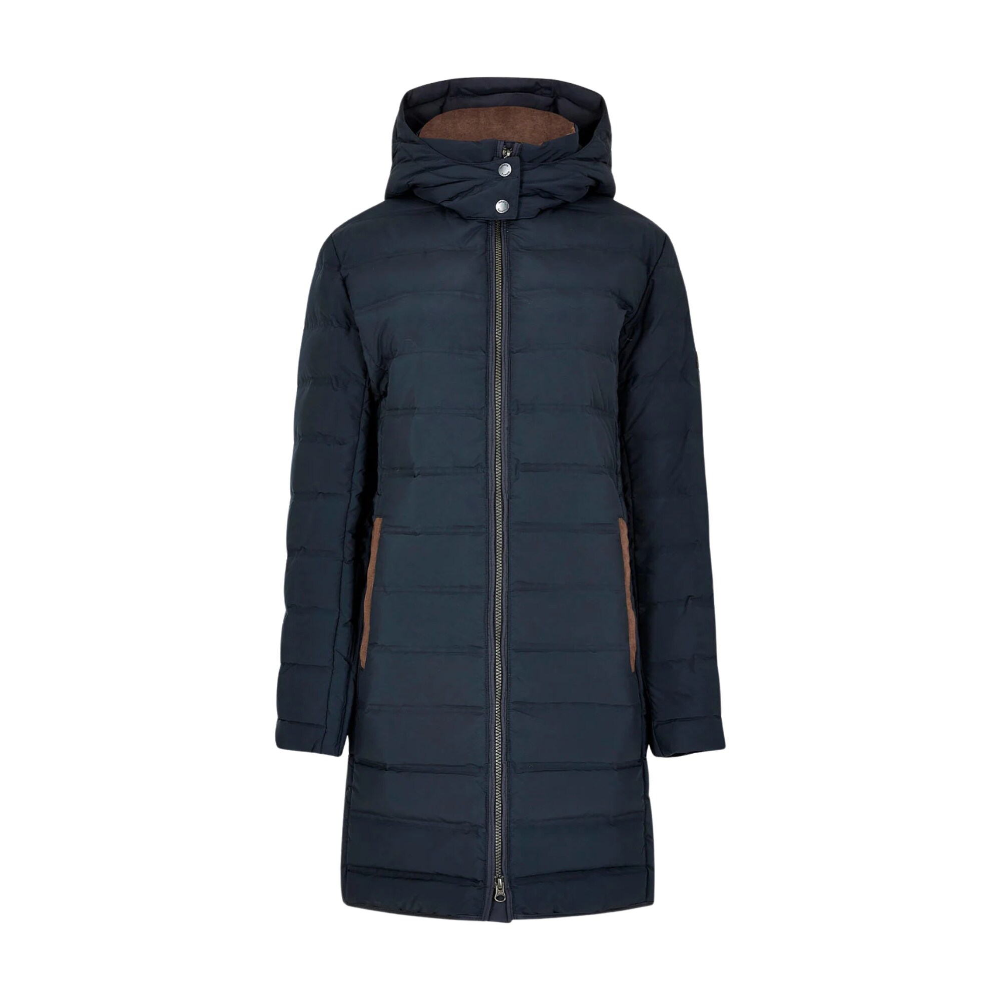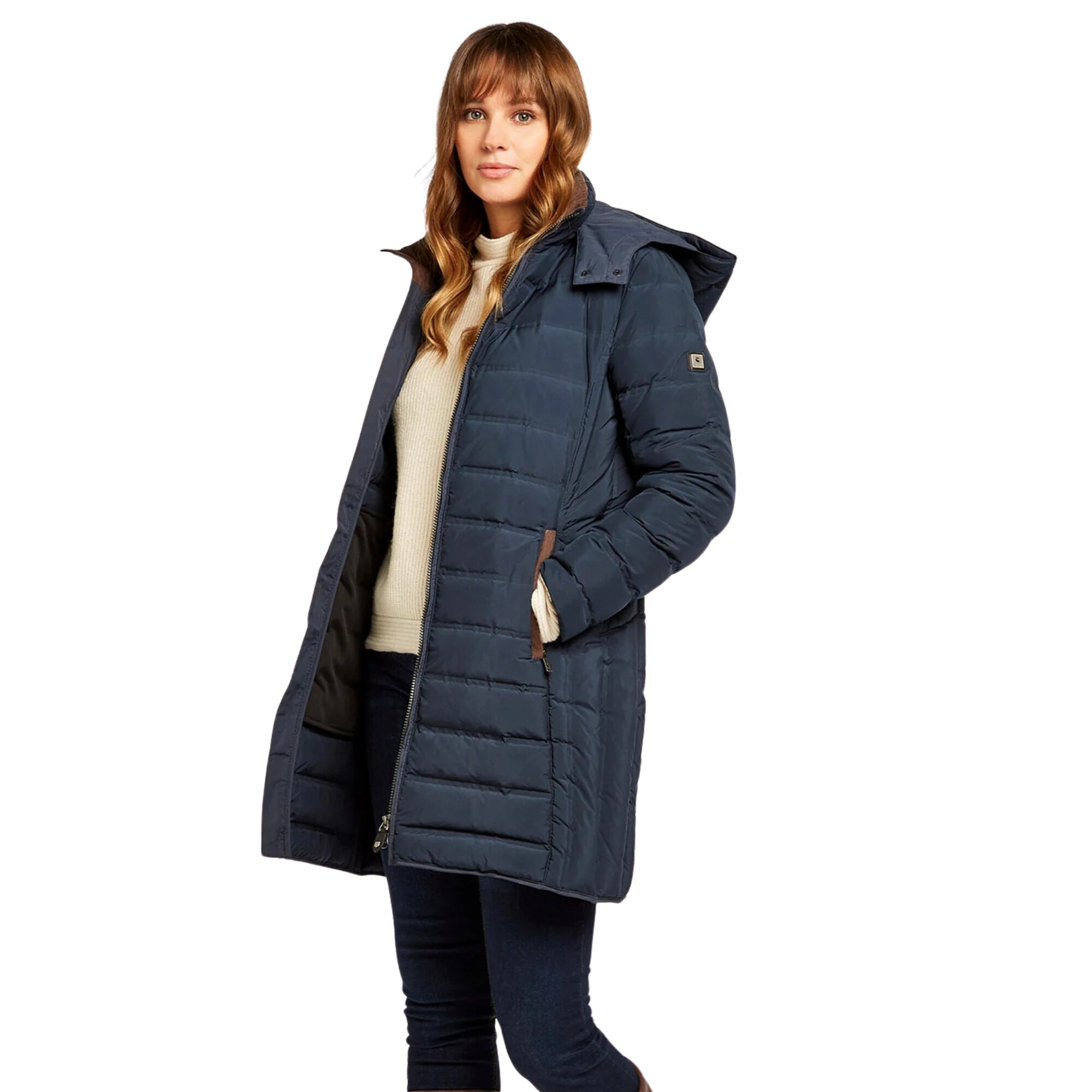 Dubarry Ballybrophy is an elegant and functional three-quarter length down coat that keeps you warm and comfortable during cold autumn and winter days. Filled with 90% ethically sourced down and 10% feathers, this coat is lightweight, soft, and insulating – perfect for the stable, everyday wear, or long dog walks.