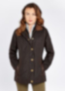 This stylish jacket has a waxed cotton exterior and PrimaLoft® filling. The Mountrath jacket has leather and faux suede details at the cuffs, neck and pockets. The jacket has a two-way zip and buttons with Dubarry logos on them.