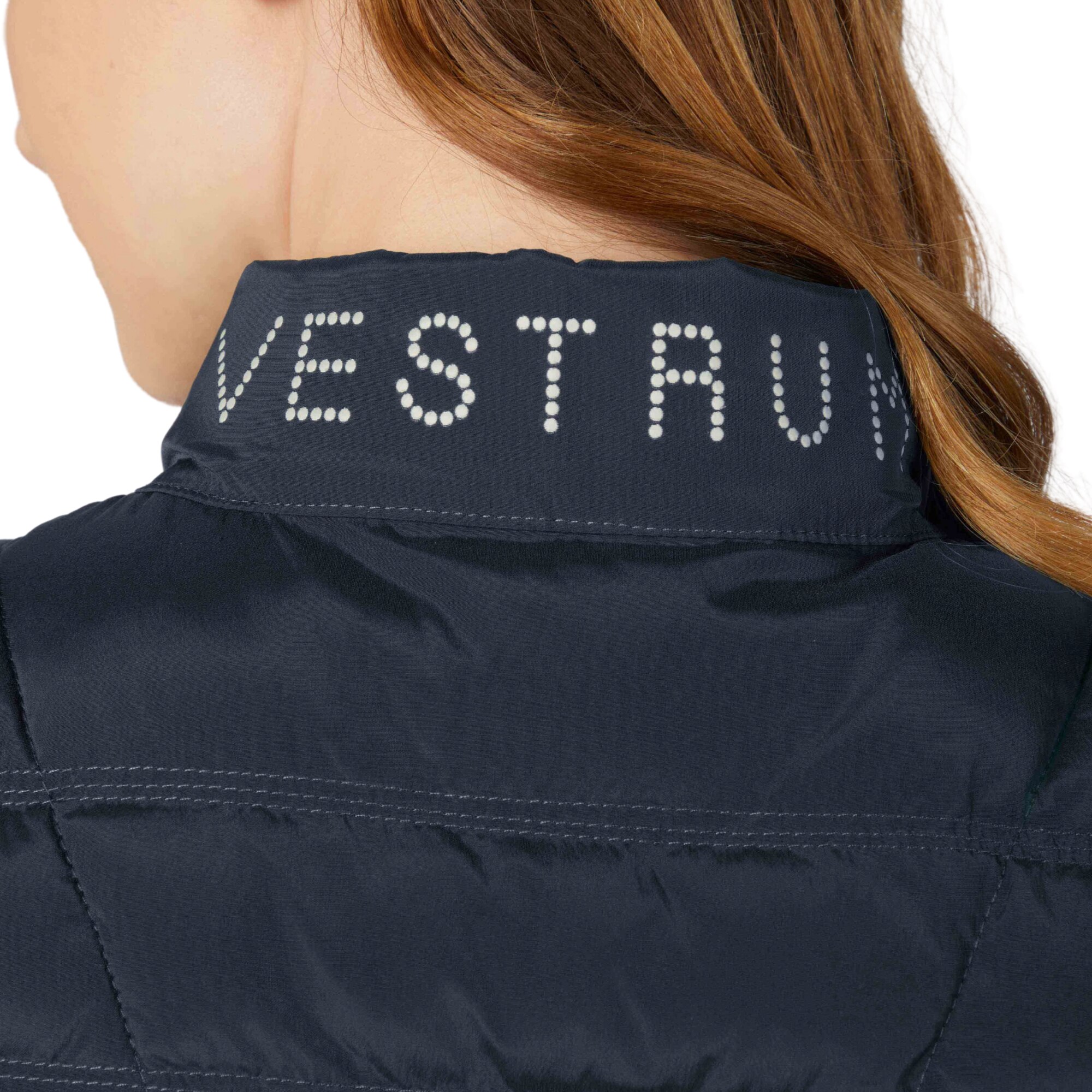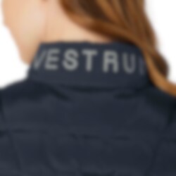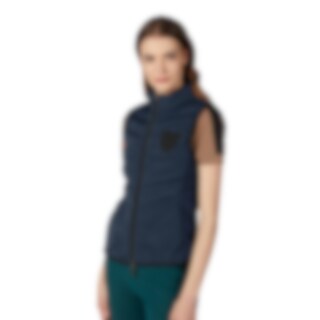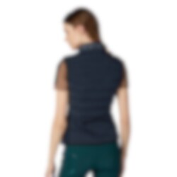 The Vestrum Fortaleza Riding Vest is a navy hybrid riding vest that combines insulated panels with flexible sections for a streamlined fit. The vest features a padded upper section at the front and back, providing lightweight warmth without added bulk.