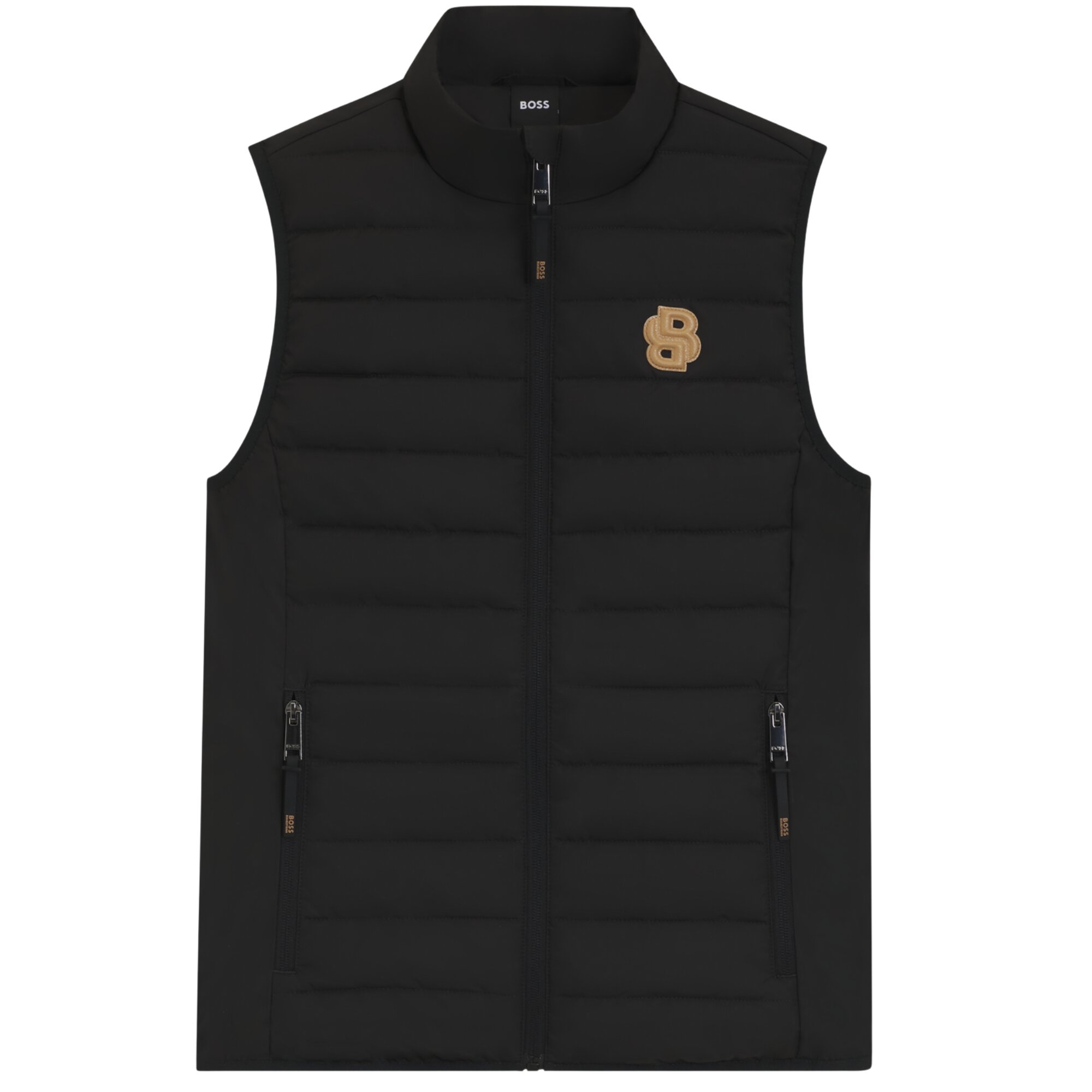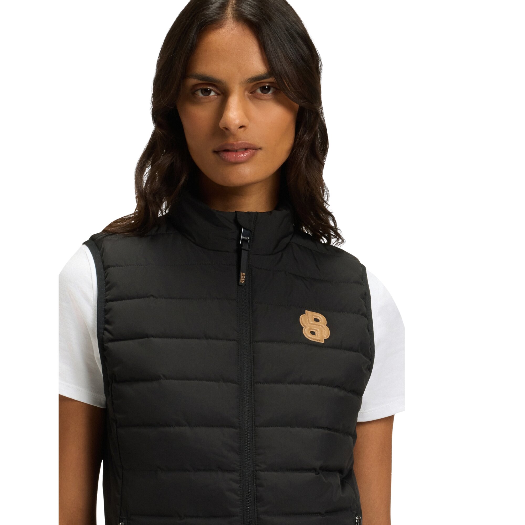 The material is waterproof with a 10,000 mm water column rating and has a breathability of 10,000 MVP, making the vest ideal for changing weather conditions. On the left chest there is a stylish faux leather patch in the shape of the iconic Double B logo, and on the back there is an exclusive faux leather patch with the BOSS Equestrian logo.
