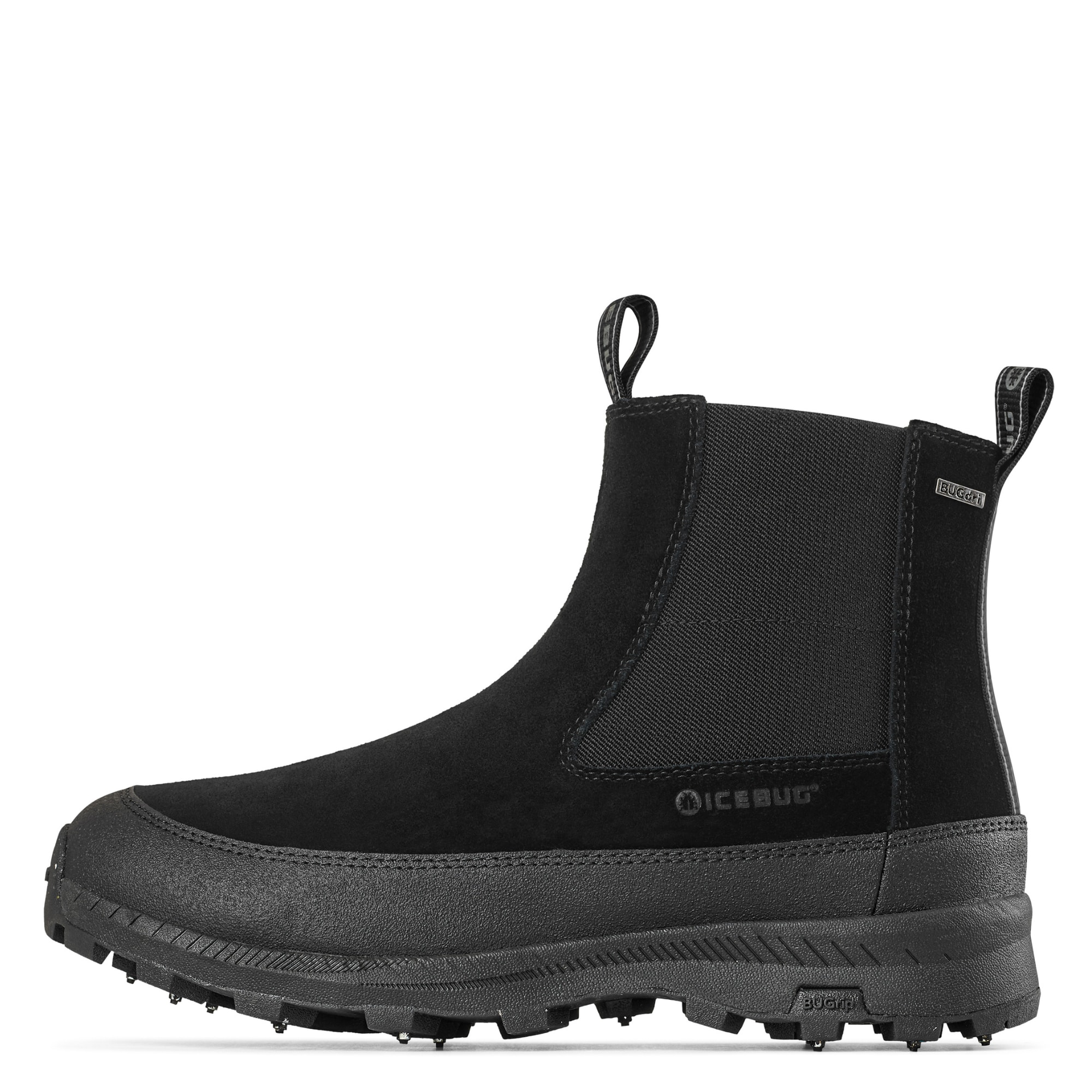 The BUGrip® outsole with 17 dynamic carbide steel studs adapts to the surface and provides stable traction on both icy and hard ground.